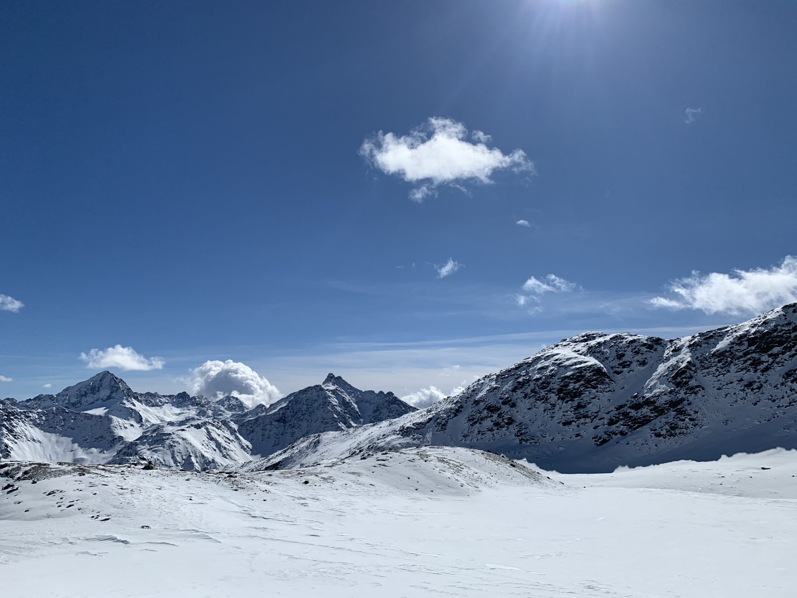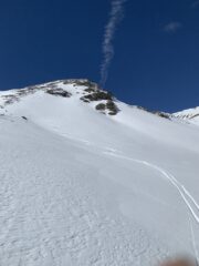 Da s.caterina valfurva si prosegue per la s.s.300 del gavia sino alla sbarra di plaghera(qualche km.).Da qui,calzati gli sci si sale un po’ per stradina e dove si puo’ fare qualche taglio.giunti all’imbocco della valle dell’alpe(c’e’ un cartello)a circa 2200m,si entra in valle salendo dolcemente sino ad incontrare e oltrepassare la seggiovia ed il letto di un torrente.Da qui si prosegue su dolci pendii sino ad incontrare ed attraversare un altro torrentello.A questo punto puntare sempre in oblicuo verso la bastionata rocciosa in fondo a sx,tenersi a distanza ma andare paralleli sino al pianoro di q.2700m dove alla fine si sale a sx e per pendii piu’ intuitivi si giunge alla base del ghiacciaio e con un giro in senso antiorario si giunge in vetta.