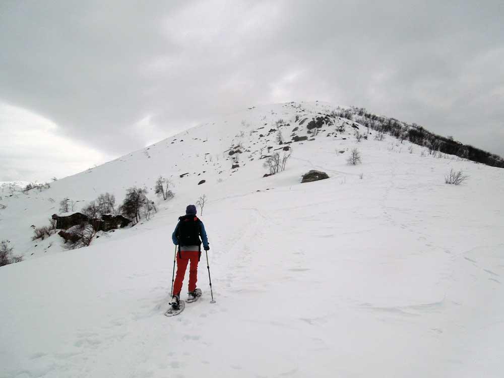 Traccia ben battuta sino alla Bassa di Mares, poi qualche vecchia traccia poco visibile e comunque tutta da battere sulla dorsale molto lavorata dal vento. Neve bella farinosa nel bosco (molto umida al ritorno) ma fuori da esso solo crosta alternata a piccoli accumuli eolici dove si sprofondava un po’.
