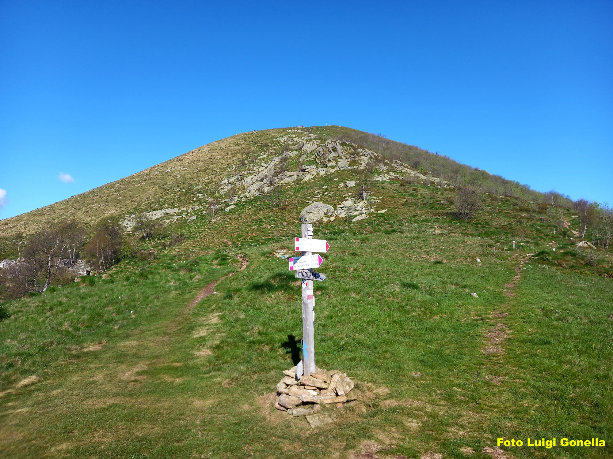 Partito con Maurizio da Trione, saliti fino a Balmassa per prendere il sentiero. Dalla Cima Mares scesi fino alla Cappella San Bermardo e qui fermati. Temperatura ottima. Panorama super sull’arco alpino. Bellissimo l’attraversamento del bosco. Oggi meta frequentata, alcuni diretti al Soglio.