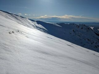 Parcheggiato a case Ciochet. 10′ a piedi, ma la neve in basso sta scomparendo in fretta. Sceso presto su primaverile molto bella (perfino un po’ dura in alto). Stradina al solito brutta, da salvare le gambe. Inaspettatamente nell’ultima parte ho di nuovo trovato neve bella sui pendii con meno alberi. La valutazione e’ una media pesata tra i pendii da 5* e la stradina da 2*.