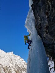 Sopra , il tiro continua ad essere non difficile ma non perde grado e si esce con un lungo run-out di una decina di metri, su un cartonato scollatissimo ma molto sano dove è sufficiente rimanere sereni.