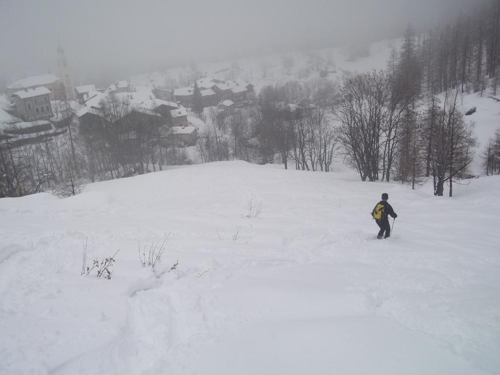 Tanta nebbia e poca gente,la neve già un pò umida ma ancora ben sciabile. In vetta panorama zero. Oggi in compagnia di Gianfri Nadia e Jolie…