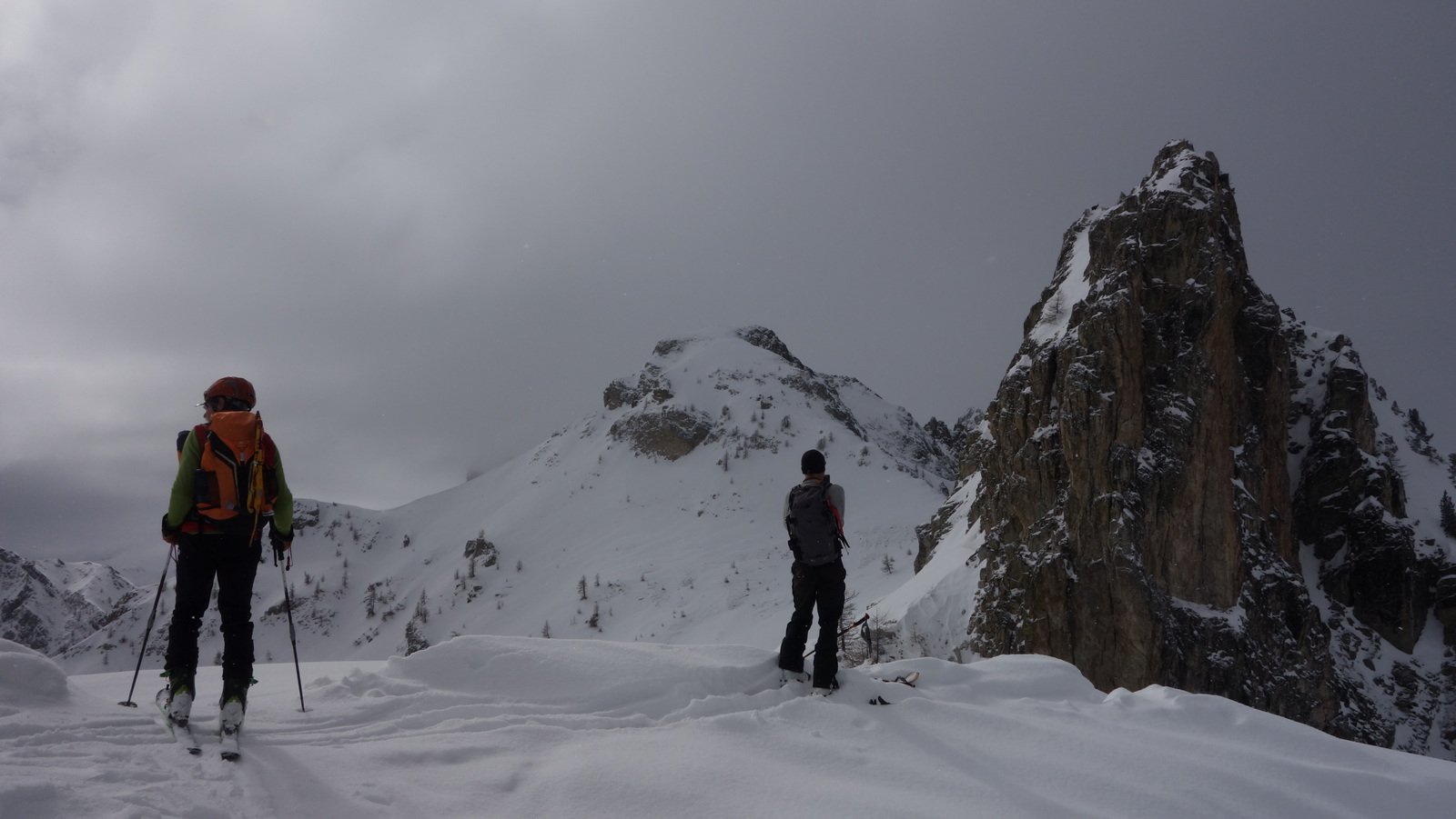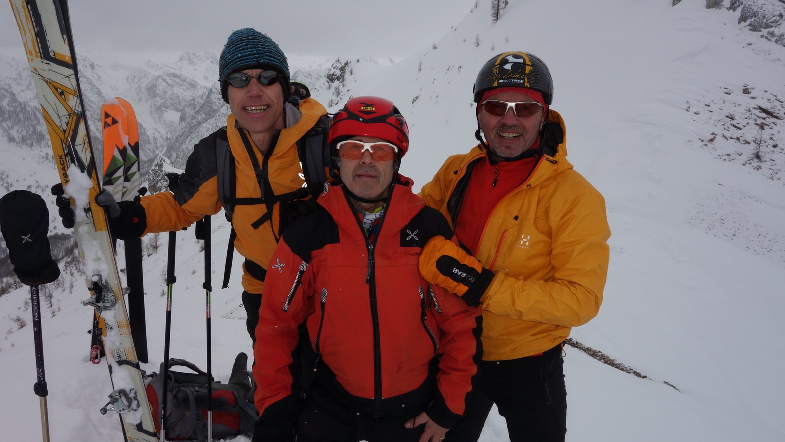 Le previsioni davano sul bello ! Invece cielo coperto con debole nevischio , sereno dopo le 14 . Neve molto bella con tracce di salita e discesa numerose . Arrivati al colle delle Basse abbiamo proseguito sotto il Piutas e siamo arrivati alla quota 2429 sci ai piedi .