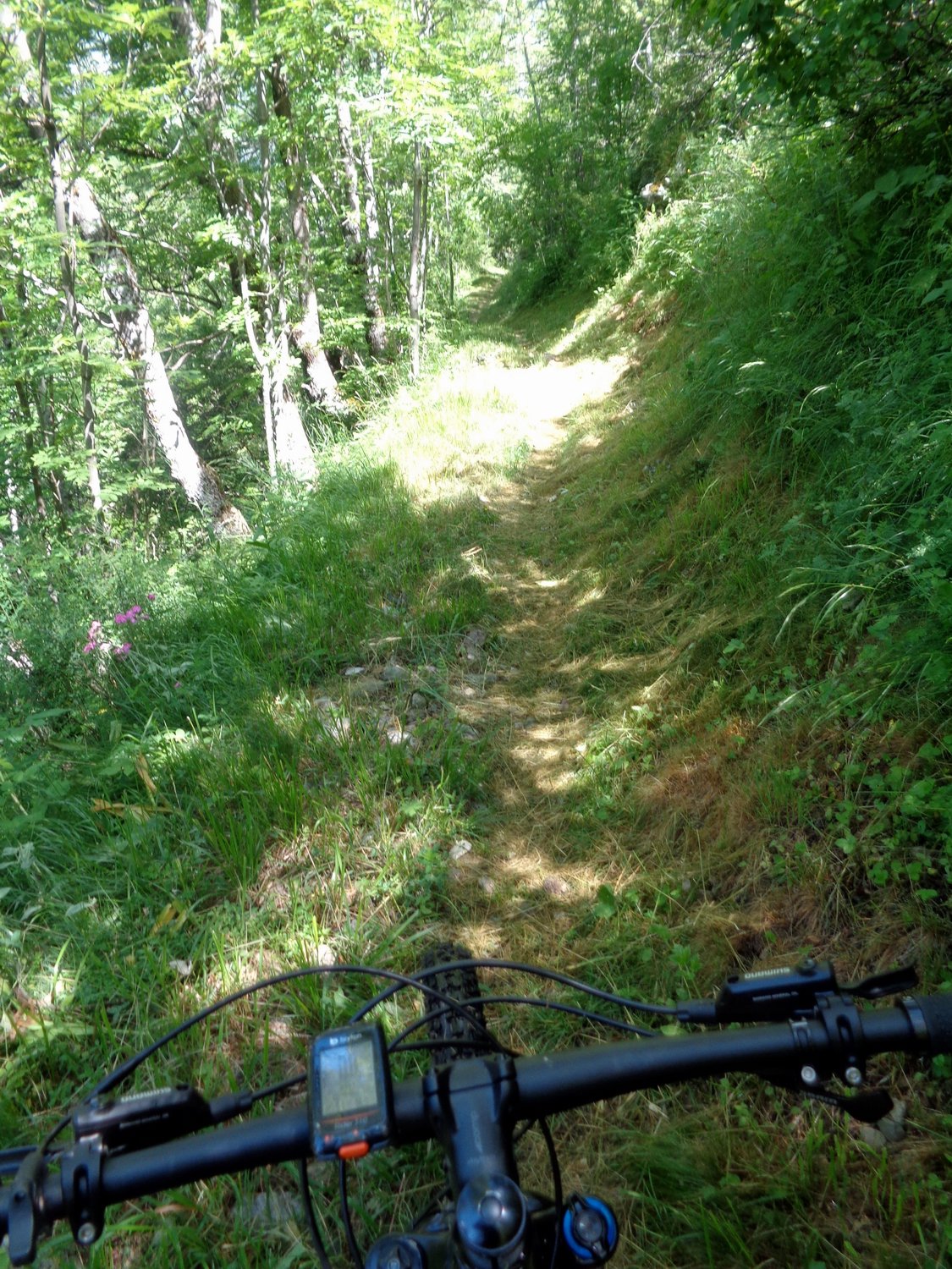 Da Canosio. La discesa dal colle Soleglio Bue nella prima parte, a parte il brevissimo traverso su pietraia, è in pessime condizioni. Si cicla poco anche perchè la mancanza di manutenzione e le piogge hanno rovinato in più punti la traccia già di per se ripida e tecnica. Poi dal pianoro dove scende la valanga (alberi piegati) la situazione migliora nettamente e finalmente ci si può godere la discesa su sentiero che rimane a tratti tecnico. Nella parte bassa della discesa per raggiungere Pratorotondo bisogna abbandonare il PO che a destra scende diretto a Chialvetta e continuare il traverso a sx che con un tratto in leggera salita porta alla borgata. I sentieri Pratorotondo-Chialvetta-Gheit-Frere sono da puro divertimento con erba sfalciata recentemente! Da Frere a Maddalena ho continuato su sterrata in dx orografica fino a Maddalena da cui ho raggiunto Prazzo superiore su asfalto. Infine ultima fatica di giornata, sicuro non ne avevo più ma la salita al colletto Canosio sotto sole cocente e pendenze cattive è un bel calcio nei denti!! Ultima discesa su Canosio seguendo ancora il PO, poco frequentato ma fattibile in mtb evitando così il bitume anche nell’ultimo tratto!!!