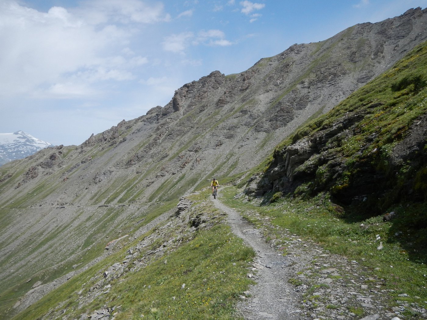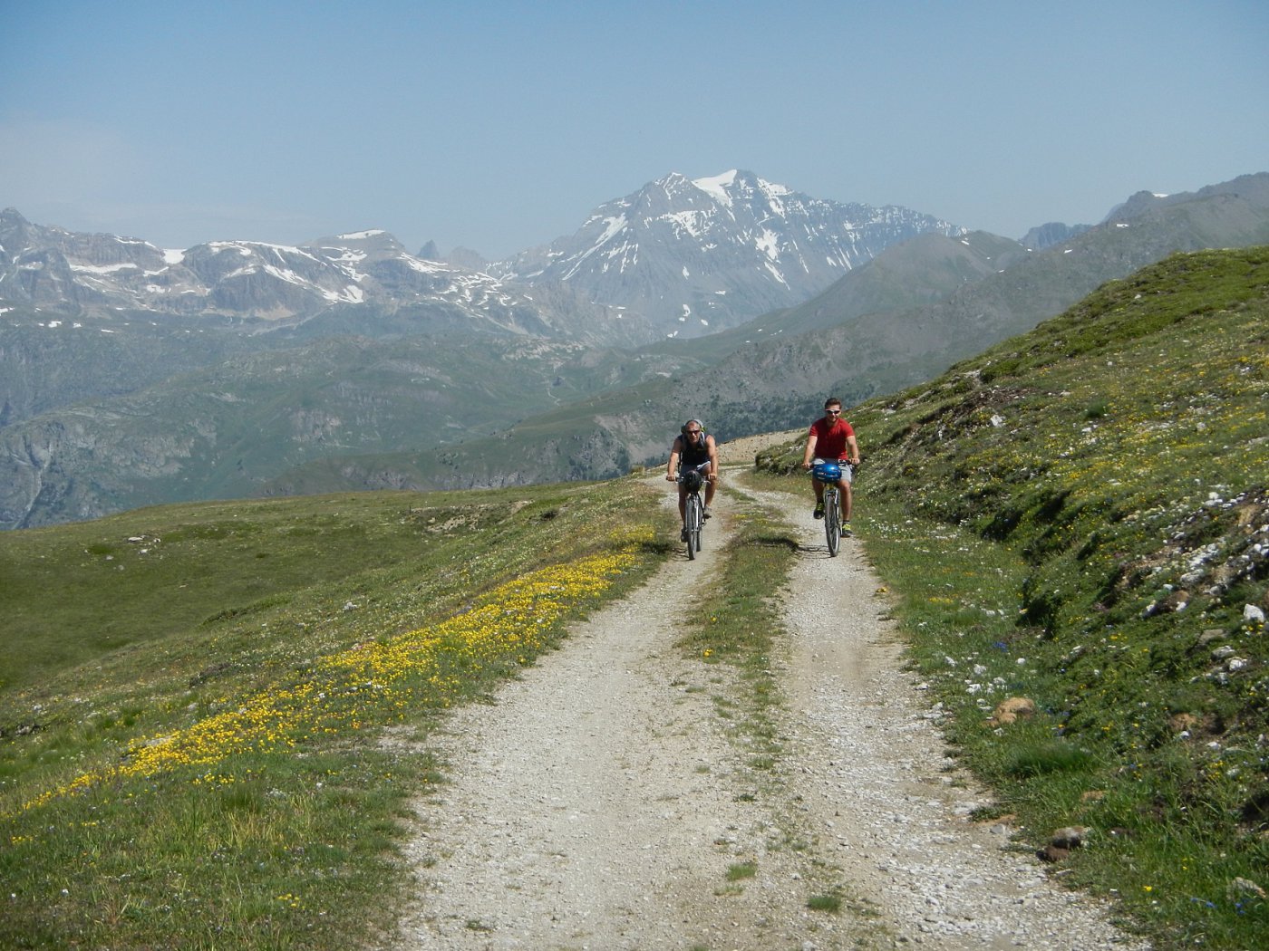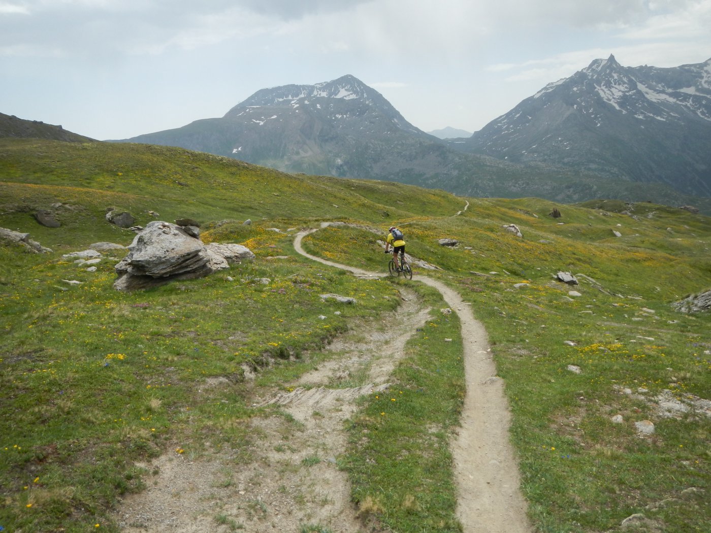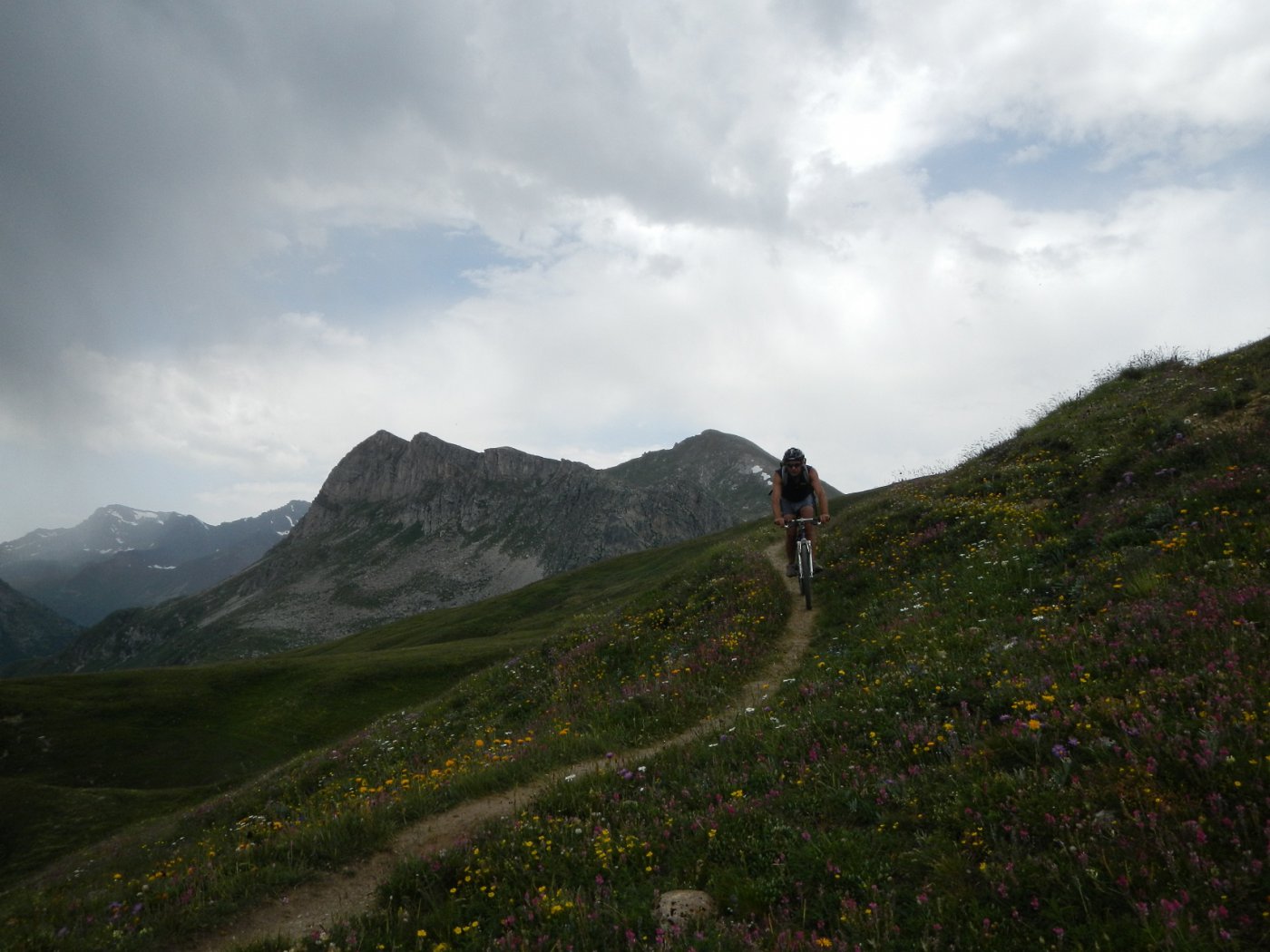 Dal colle seguire le indicazioni per il Col du Petit Mont Cenis con una bellissima discesa su un sentiero in mezzo ai prati fino a raggiungere la strada asfaltata che con qualche saliscendi riporta al Colle del Moncenisio (30 km). Da qui scendere per circa 500 m lungo la statale e all’altezza di una bergeria svoltare a sx e seguire lo Chemin de la Ramasse (all’inizio poco evidente) che con una divertente discesa lungo le piste da sci riporta in breve a Lanslebourg (34 km)