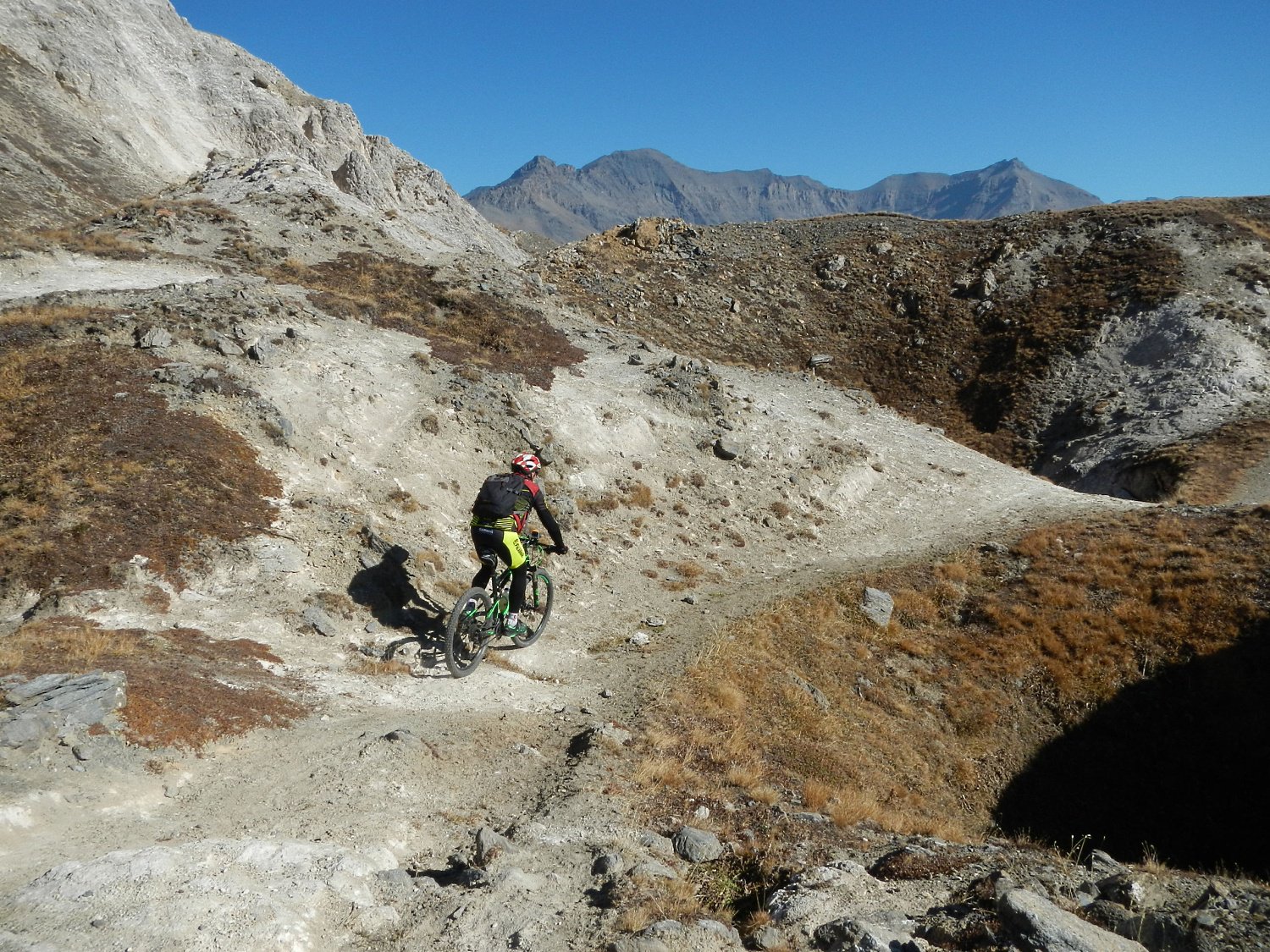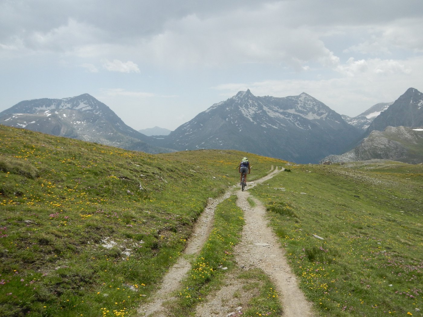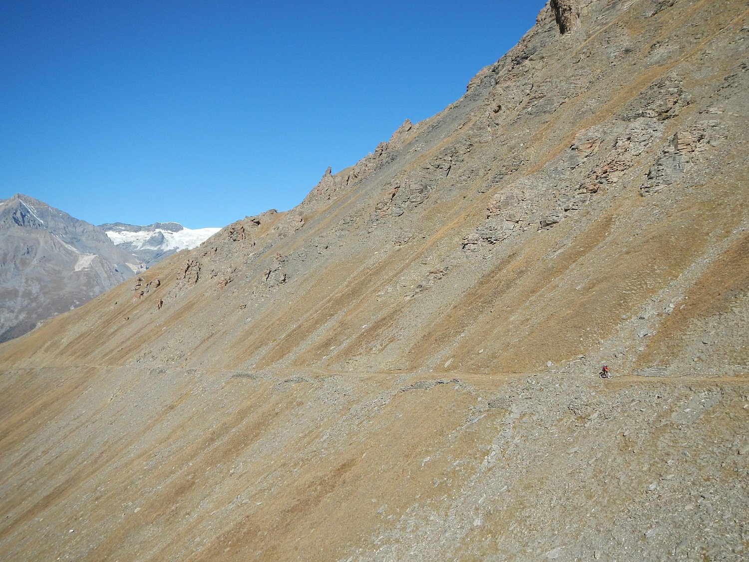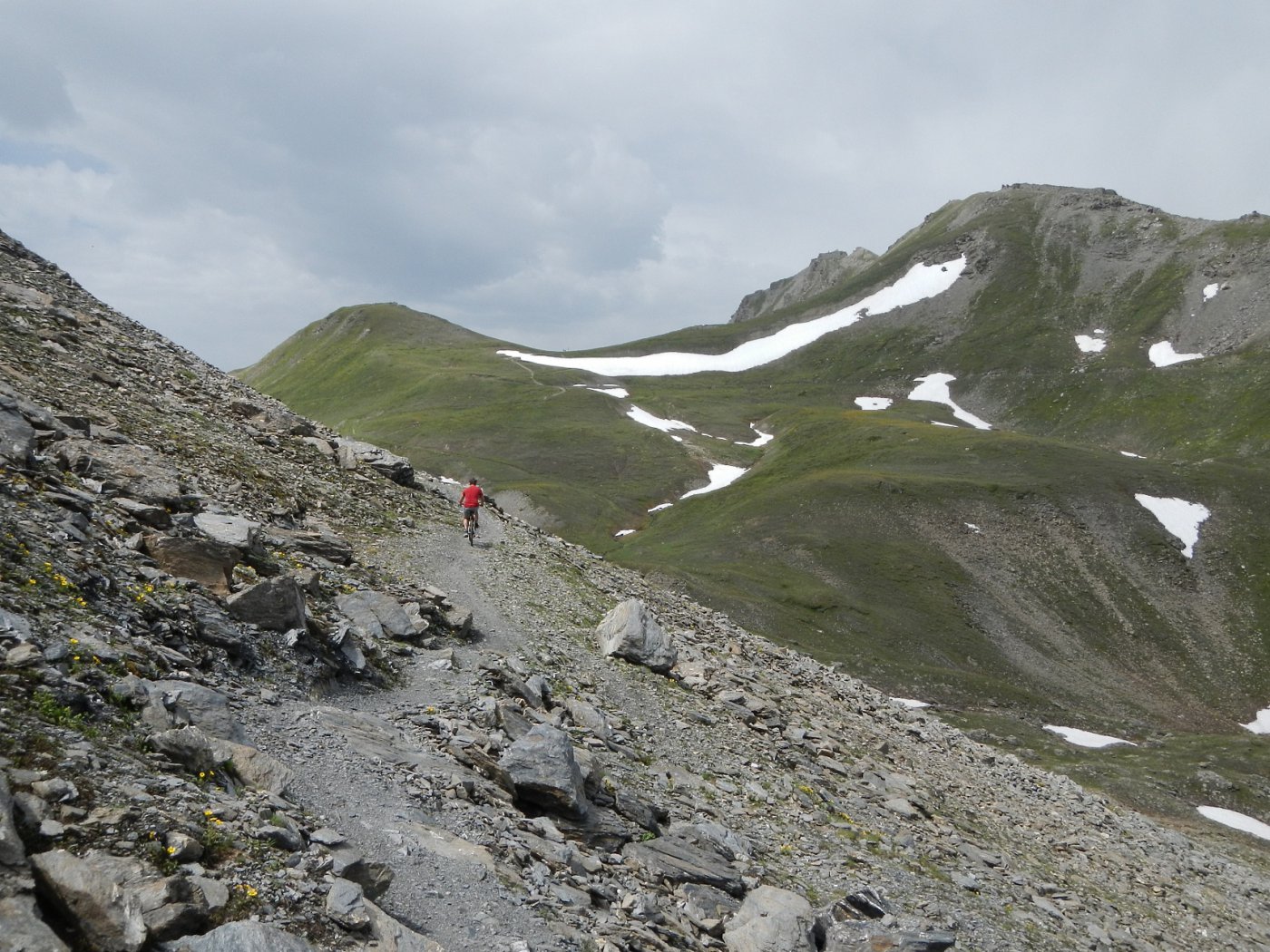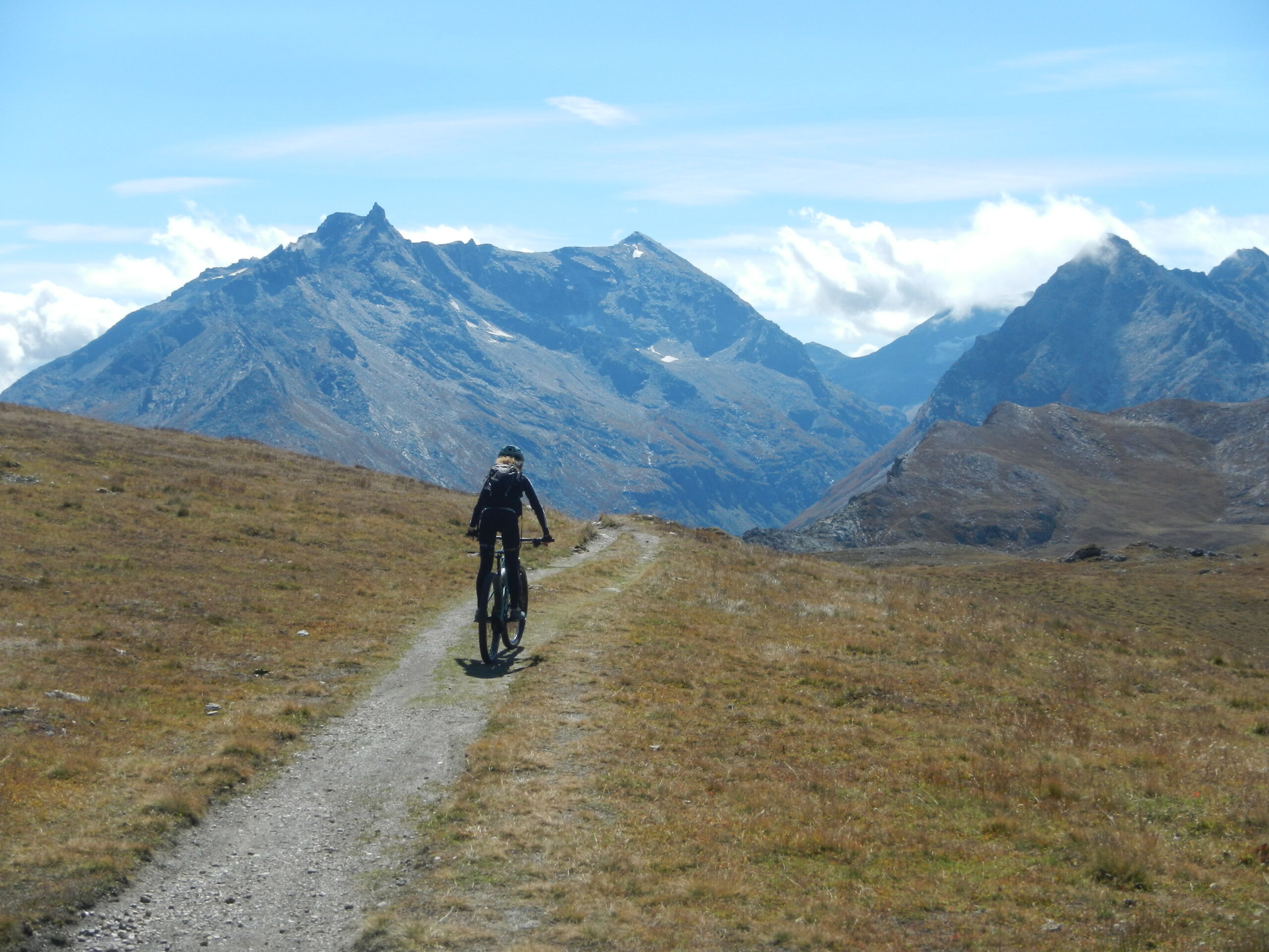 Dal colle seguire le indicazioni per il Col du Petit Mont Cenis con una bellissima discesa su un sentiero in mezzo ai prati fino a raggiungere la strada asfaltata che con qualche saliscendi riporta al Colle del Moncenisio (30 km). Da qui scendere per circa 500 m lungo la statale e all’altezza di una bergeria svoltare a sx e seguire lo Chemin de la Ramasse (all’inizio poco evidente) che con una divertente discesa lungo le piste da sci riporta in breve a Lanslebourg (34 km)