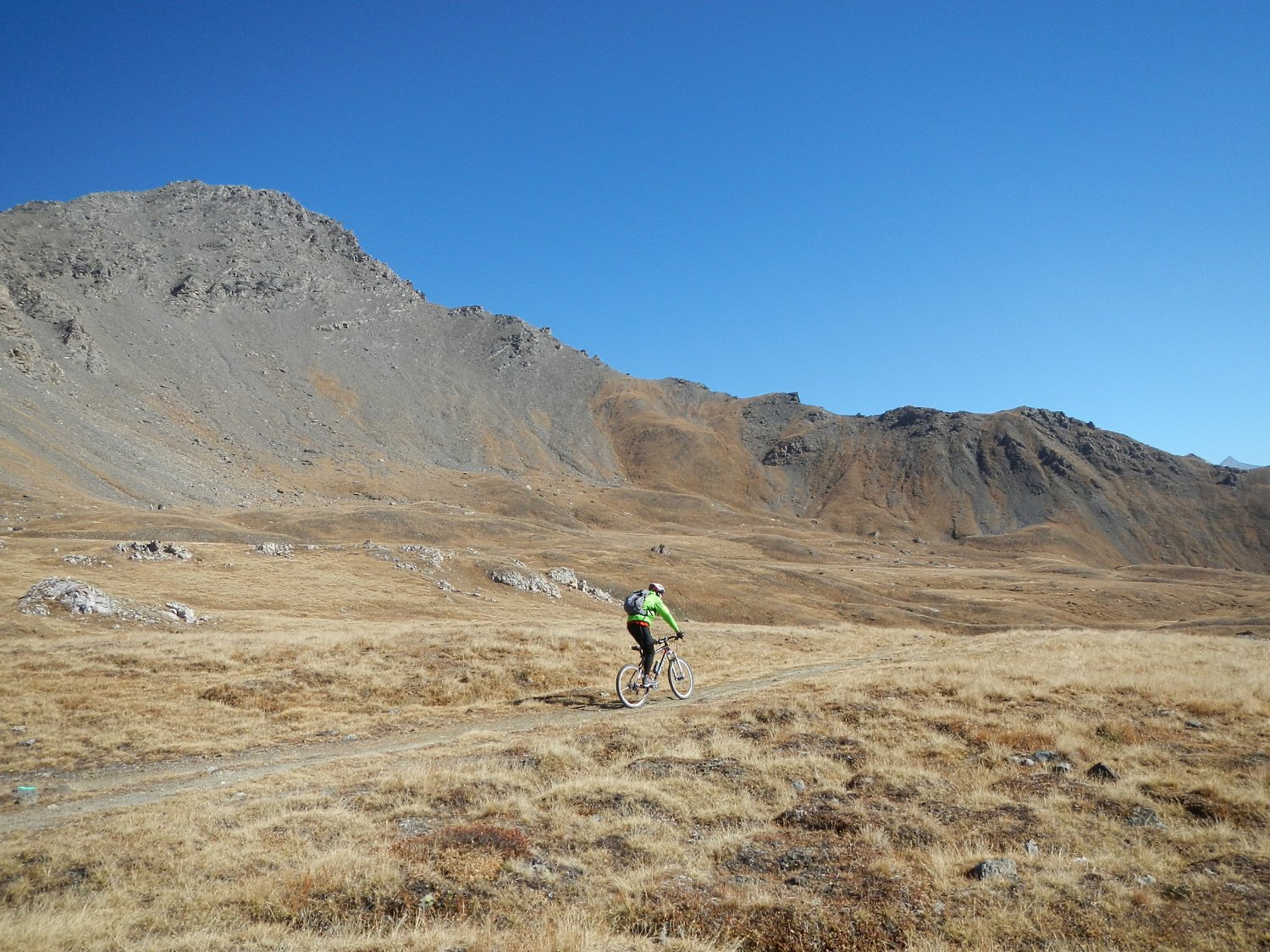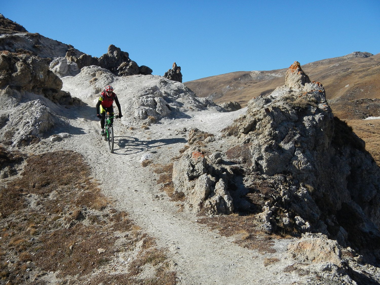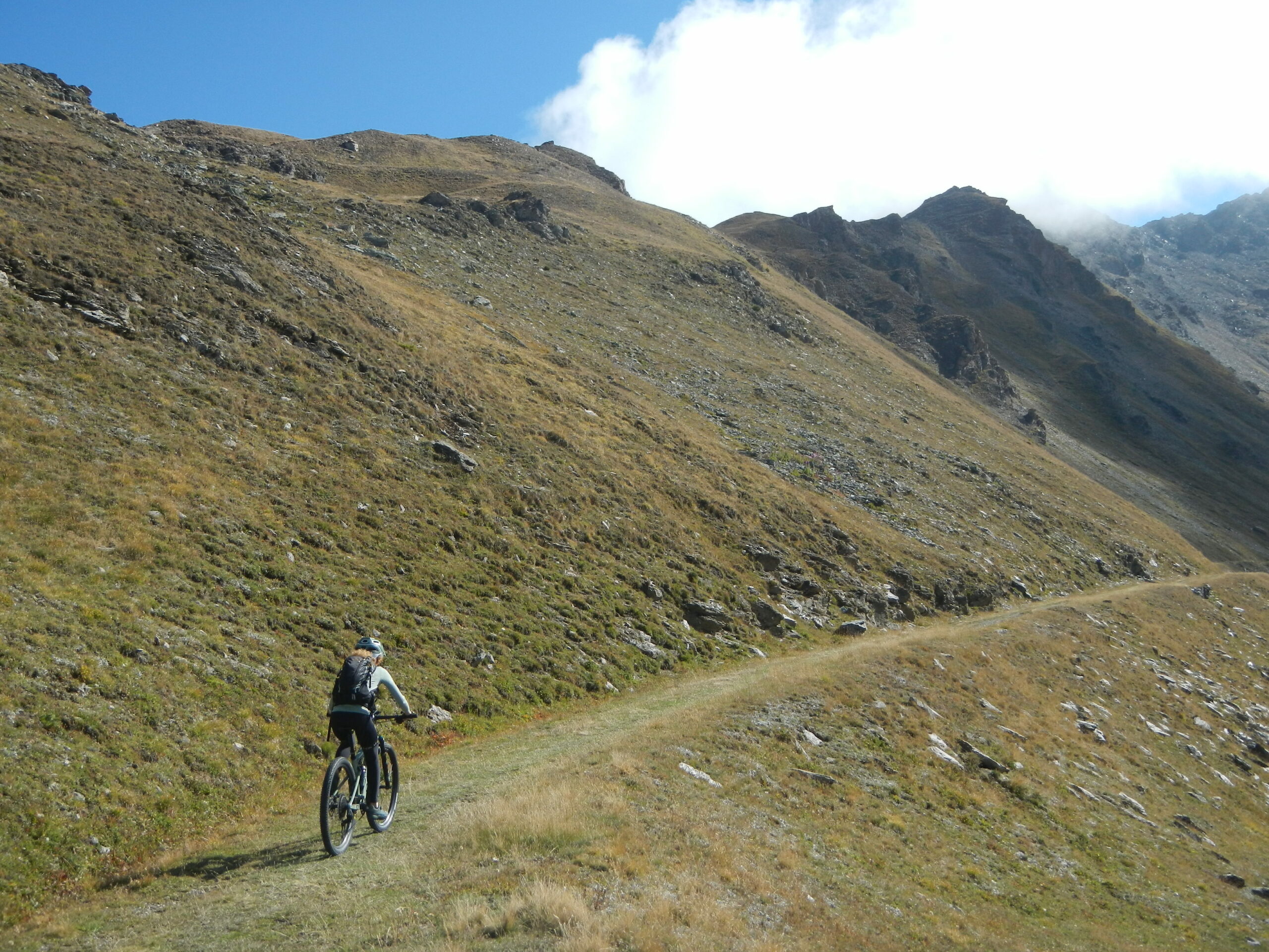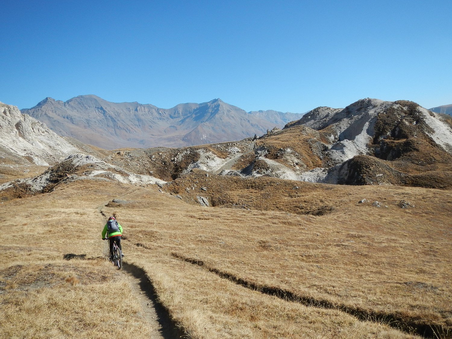 Dal colle seguire le indicazioni per il Col du Petit Mont Cenis con una bellissima discesa su un sentiero in mezzo ai prati fino a raggiungere la strada asfaltata che con qualche saliscendi riporta al Colle del Moncenisio (30 km). Da qui scendere per circa 500 m lungo la statale e all’altezza di una bergeria svoltare a sx e seguire lo Chemin de la Ramasse (all’inizio poco evidente) che con una divertente discesa lungo le piste da sci riporta in breve a Lanslebourg (34 km)