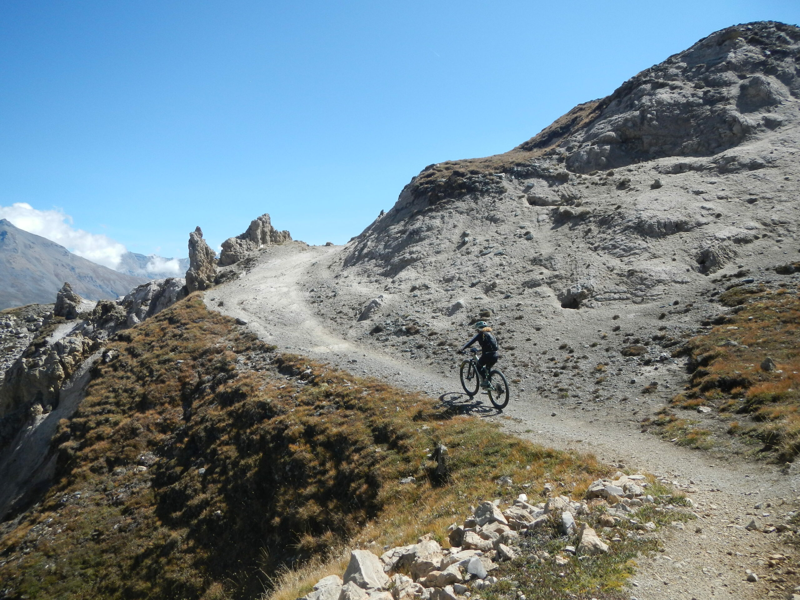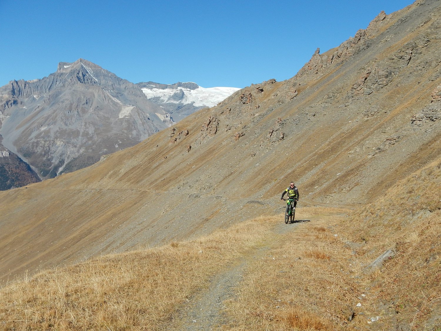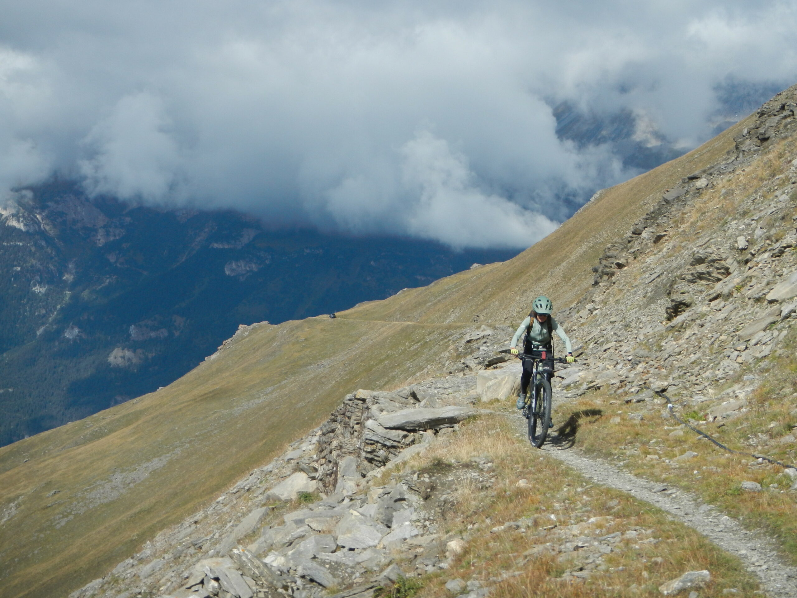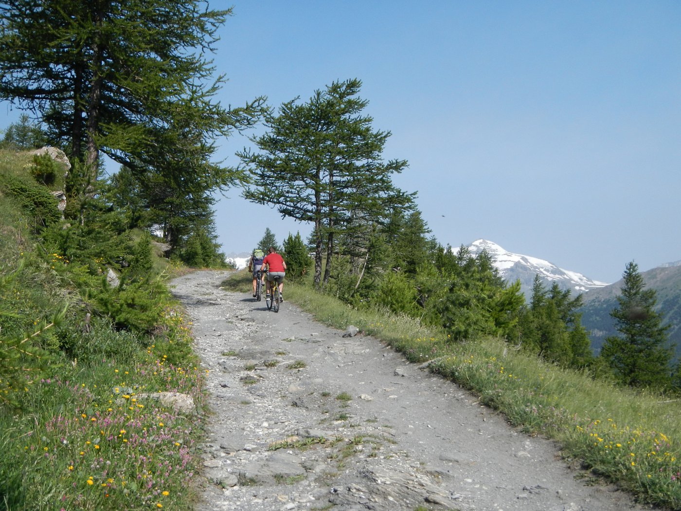 Dal colle seguire le indicazioni per il Col du Petit Mont Cenis con una bellissima discesa su un sentiero in mezzo ai prati fino a raggiungere la strada asfaltata che con qualche saliscendi riporta al Colle del Moncenisio (30 km). Da qui scendere per circa 500 m lungo la statale e all’altezza di una bergeria svoltare a sx e seguire lo Chemin de la Ramasse (all’inizio poco evidente) che con una divertente discesa lungo le piste da sci riporta in breve a Lanslebourg (34 km)