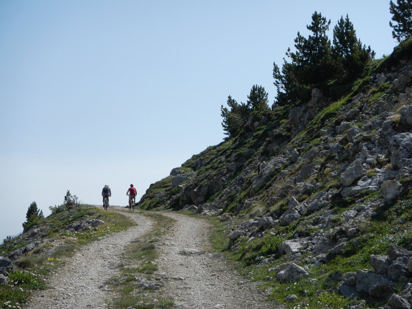 Svoltare a destra e raggiungere, dopo circa 3 km di leggeri saliscendi, raggiungere le Replat des Canons (2.098 m – 13 km), dove ci si ricongiunge con lo sterrato che sale da Termignon. Da qui seguire le indicazioni per il Col des Sollieres lungo una sterrata che segue gli impianti di risalita. Dopo un paio di km si trova un bivio dove bisogna svoltare a sinistra, ignorando le indicazioni che danno il Col de Sollieres a destra. La strada prosegue ancora per qualche km poi si restringe via via fino a diventare un sentiero e con un lungo traverso si arriva al colle (2639 m – 19 km).