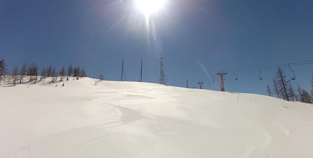 Si può chiamare in tanti modi: firn, primaverile, rigelata, velluto, crema… secondo me si può riassumere bene in due parole: FIGATA PAZZESCA! Da cima a fondo, 800m di biliardo perfetto condiviso con solo altre due persone. Sarà una gita “antropizzata” o da “pensionati”, come dicono alcuni, ma fosse sempre così. Partito quando già in basso iniziava a sgelare e quindi no rampant. Non posso dire la più bella sciata dell’anno solo perchè la stagione non è ancora finita. Una * in meno perchè nei tratti più ripidi c’era qualche vercchia traccia rigelata.