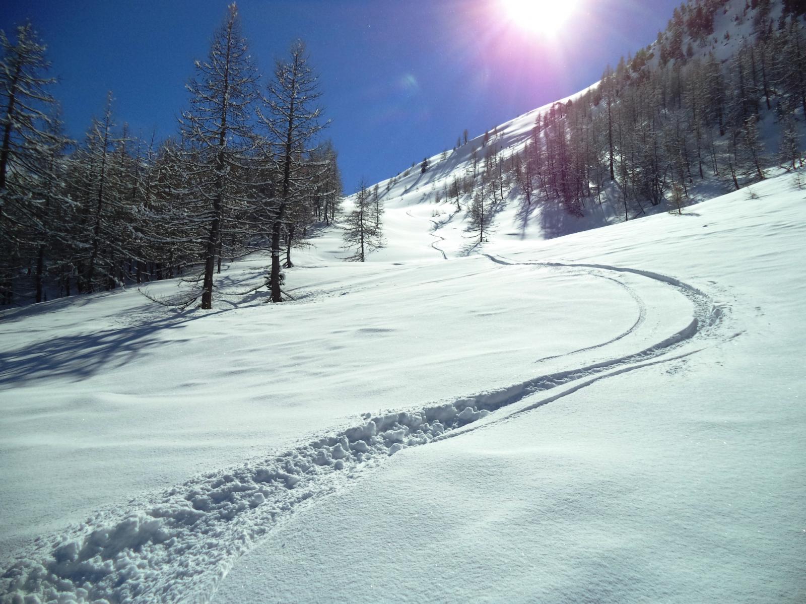 Come si fa a non dare 5*?! Le temperature rigide della notte infatti hanno provedduto a rendere leggeri e zuccherosi i 15-20cm di nuova neve . Due giri d’obbligo: salito dai trampolini battendo traccia fino all’arrivo dell’ex seggiovia, di lì sono poi sceso su pattmouche. La neve nuova non ha coperto del tutto le vecchia tracce ma le ha solo mascherate, comunque scendendo a dx del vecchio skilift solo 2 tracce oltre alla mia. Scendendo presto anche la parte bassa nel bosco era in ottime condizioni con neve farinosa. Solo nell’ultiissimo tratto dove ci si ricongiunge con le vecchie piste si percepiva solo un po’ di crosticina sotto la neve nuova (ma proprio per essere “pistin”). Risalito fino alla cima del clot vero e proprio con neve che già risentiva delle alte temperature (zoccolo), quindi per cercare la neve migliore ho pensato di scendere dietro l’arrivo dello skilift nel vallone mendia, senza parole: non una sola traccia e farina altezza ginocchia fino in fondo. Attenzione che scendendo bisogna puntare sempre a sx cercando di non perdere troppa quota, così facendo sono arrivato alla vecchia stazione intermedia del clot. Di lì tutto a sx dei trampolini in bosco ripido con ancora splendida farina pressata.