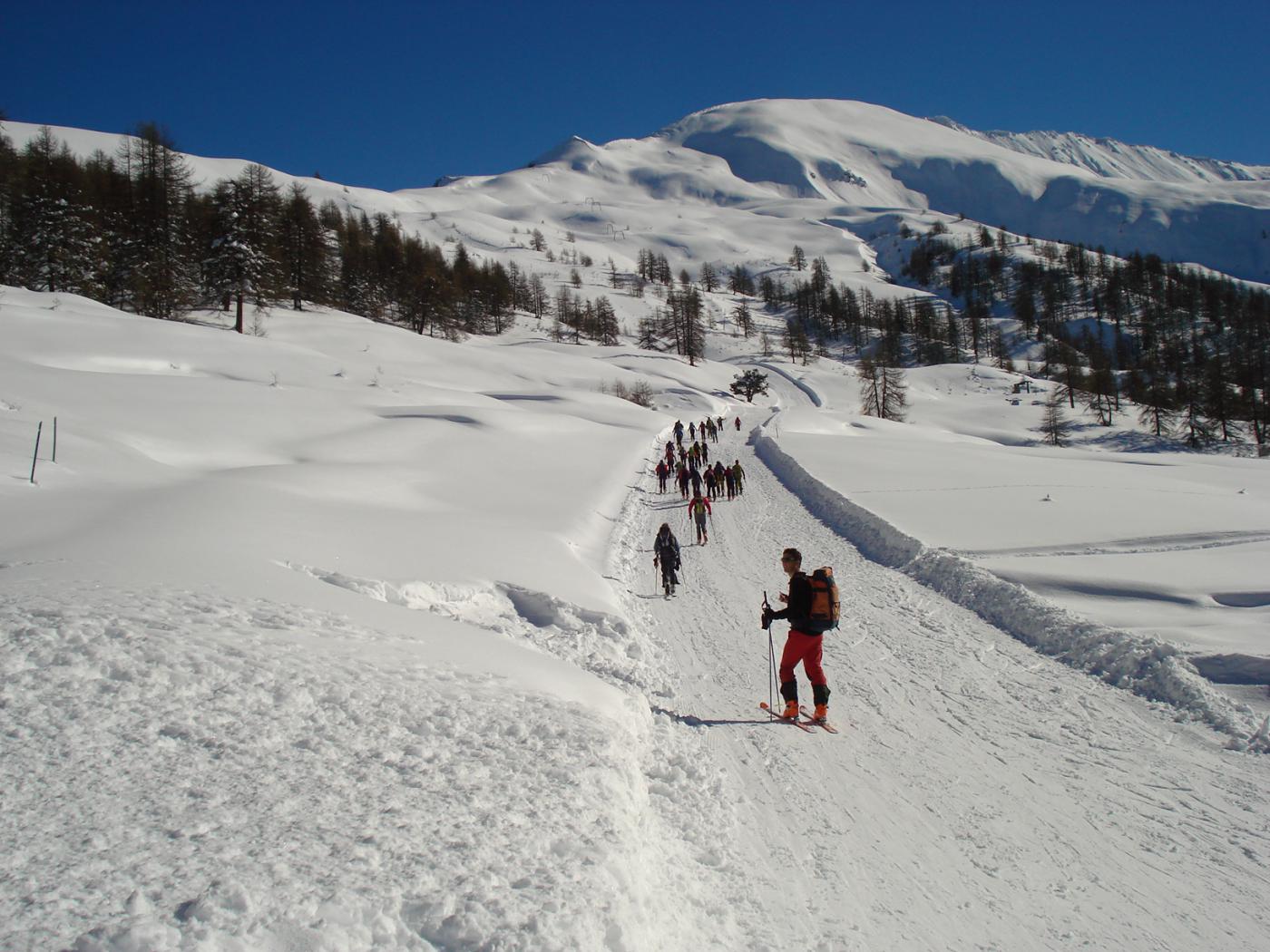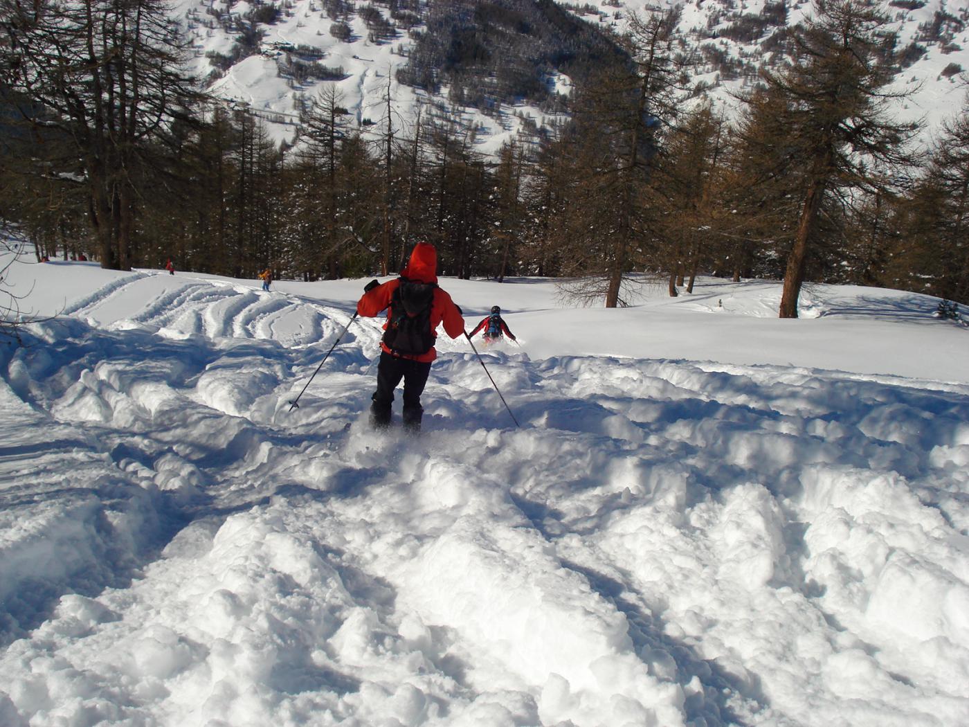 Ben 32 G.A.S.A.T.I. del CAI Chivasso in punta al Clot de la Soma in una giornata molto bella e non fredda con un ambiente favoloso. Il rischio valanghe elevato ci ha indotti a salire seguendo il tracciato dei gatti che hanno battuto una pista di risalita nella ski area dedicata al freeride, oggi parzialmente chiusa. Impegnativi alcuni ripidi muri con pendenze che sono però state brillantemente superate da tutti i partecipanti alla gita, la terza della stagione per il gruppo. Raggiunta anche la vetta a quota 2.417 dove raffiche di vento ci hanno indotto a non tergiversare. Discesa fantastica nei tratti con maggiore pendenza, un po’ meno altrove a causa della quantità di neve “eccessiva”, con neve farinosa che arrivava alla cintola, per usare un eufemismo. Difficile rialzarsi da soli in caso di cadute. Nel bosco la neve, sempre molto abbondante, era già un po’ pesante con conseguenti ripercussioni sulla sciabilità, nel complesso comunque buona. Ottima la merenda sinoira finale presso “Il Girasole” di San Germano Chisone.