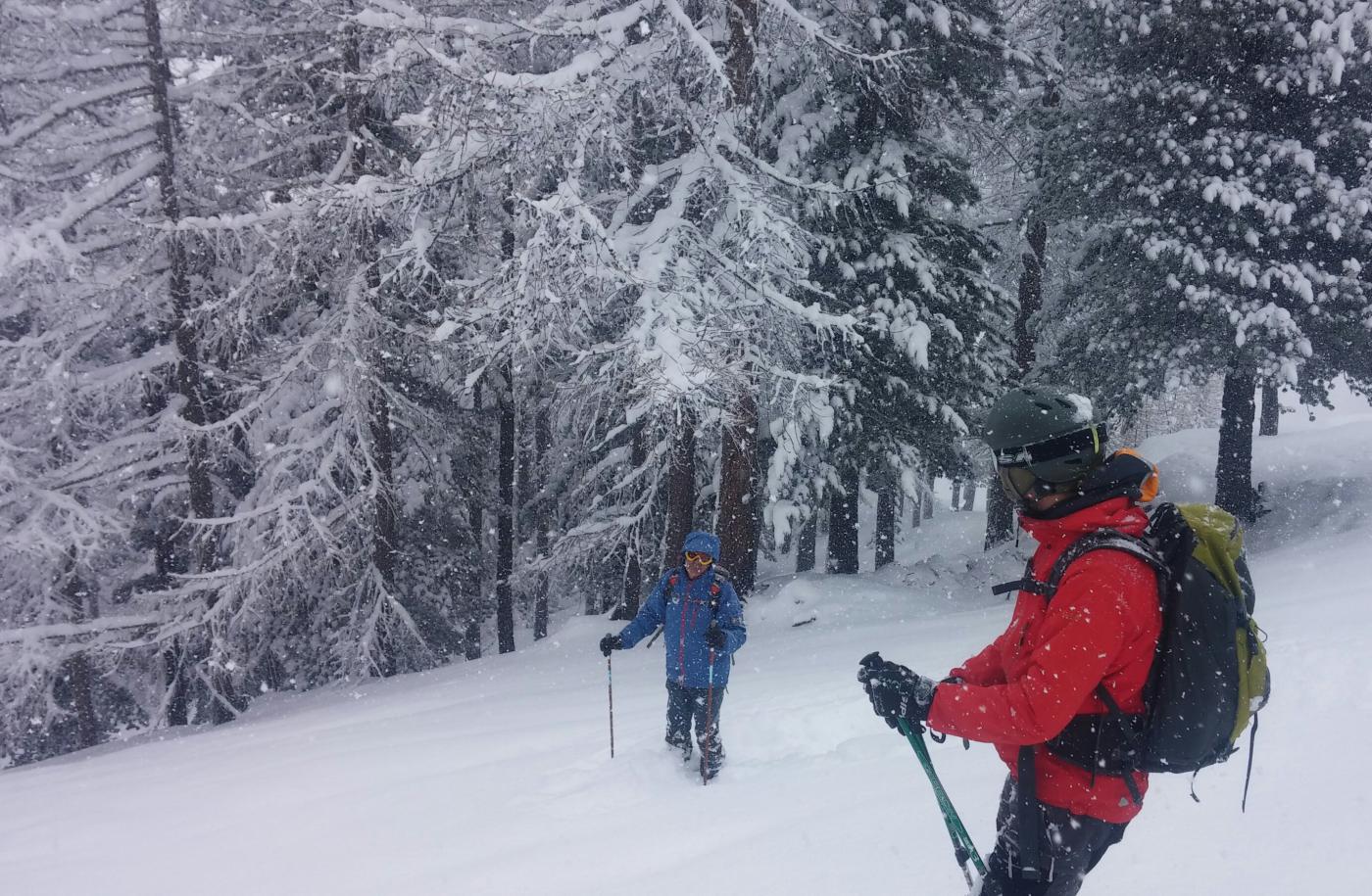 Decisamente meglio di ciò che ci aspettassimo. In alto alle 11 c’erano 50 cm di fresca e non sembrava volesse smettere, anzi caricherà ancora un paio di giorni…