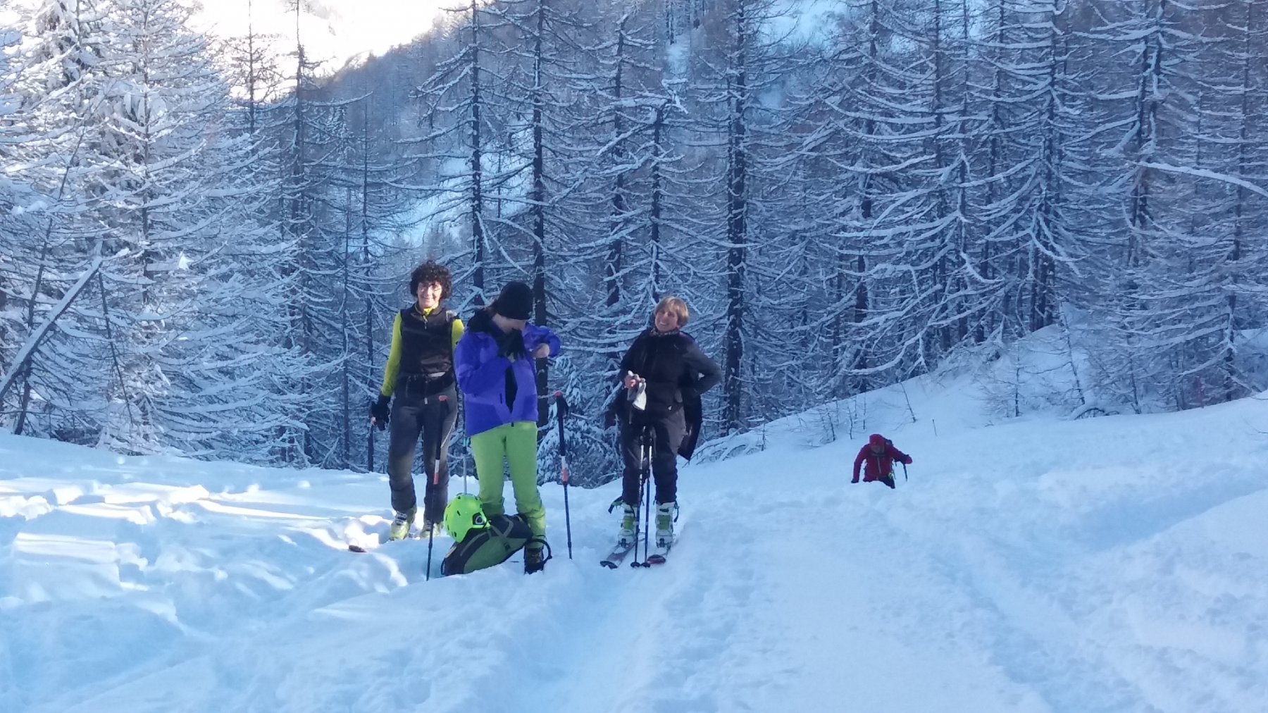Meta scelta come ripiego visto il pericolo valanghe elevato. Bella atmosfera nel bosco, grazie ai circa 50 cm di neve caduti il giorno prima. L’ultimo pendio prima della vetta e’ in ottime condizioni. Discesa molto divertente e facile, in alto ancora molti tratti intonsi poi nel bosco neve un po’ tritata dai passaggi ma sempre sciabilissima