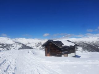 bellissima, soffice e farinosa senza nessuno passaggio ancora. Bellissime curve tra gli alberi, che comunque sono abbastanza distanziati e non danno fastidio; il tutto su buona pendenza e al riparo da vento e sole. Arrivato di nuovo a quota 2.150 ho ripellato nuovamente per rifare di nuovo il pendio ma scendendo ancora più a destra per trovare altri tratti ancora intonsi.