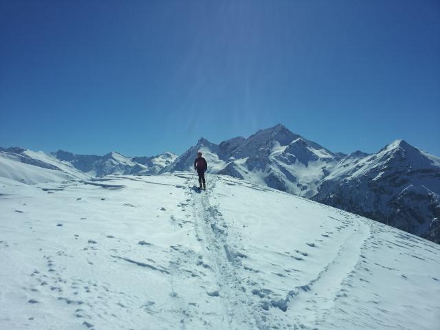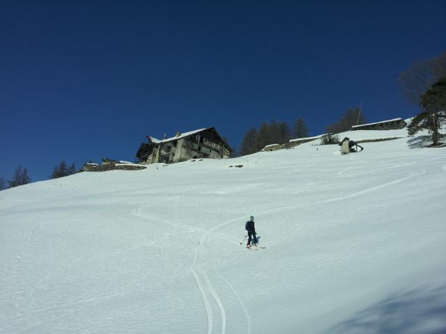 Saliti dalla ex pista dello Smeraldo, leggera brezza salendo. Un po di fastidioso zoccolo agli sci. Trovata ottima neve su tutto il percorso (scesi sulla pista di sx dello Smeraldo passando poi verso il Cristallo e scesi poi dritti sul paesino abbandonato di Josseaux e quindi arrivo alla biglietteria della pista di fondo. ANCORA NEVE BELLA, TRATTI DI POLVERE E BEI PENDII TRASFORMATI.