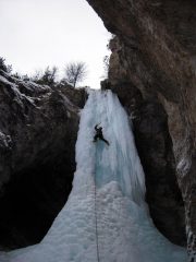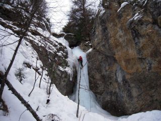 Nonostante il rialzo termico eccessivo, cascata ancora in ottime condizioni… Discesa da effettuarsi a corda doppia da alberi (cordoni di sosta con maglia rapida).