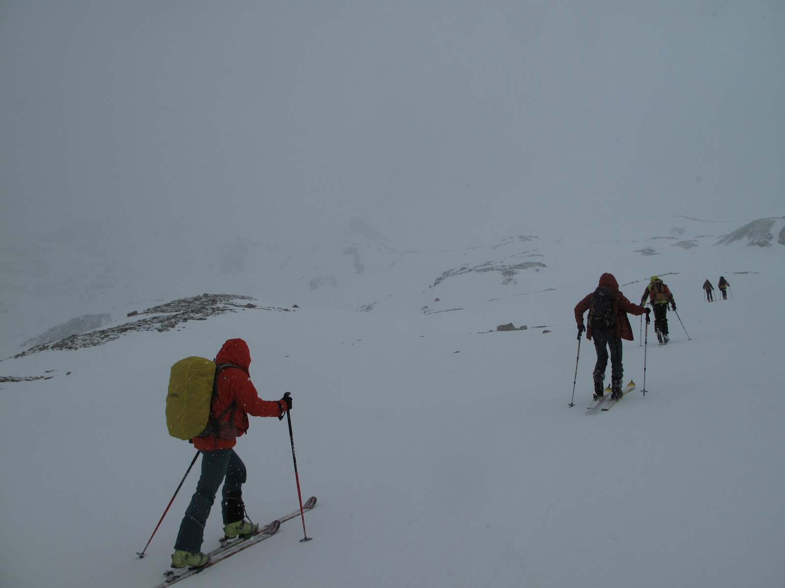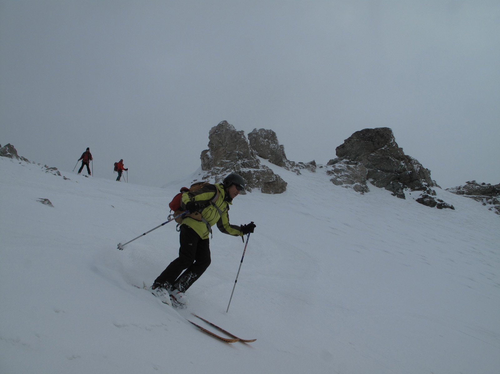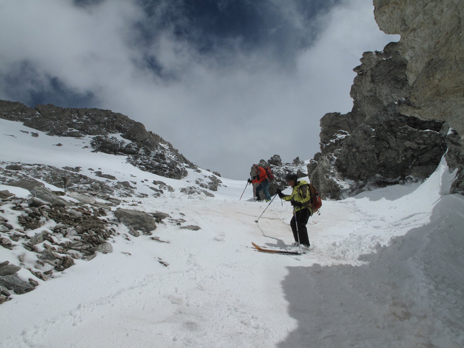 A parte le circa due ore di coda per la transumanza (quasi fino alle Grange Mouchecuite), i 200 metri di portage, il nevischio verso il Passo dei Forneaux, l’elettricità nell’aria in Cima, il resto è andato tutto bene. Discesa nel canale Ovest perfetta grazie ai 5-10cm di nuova neve.