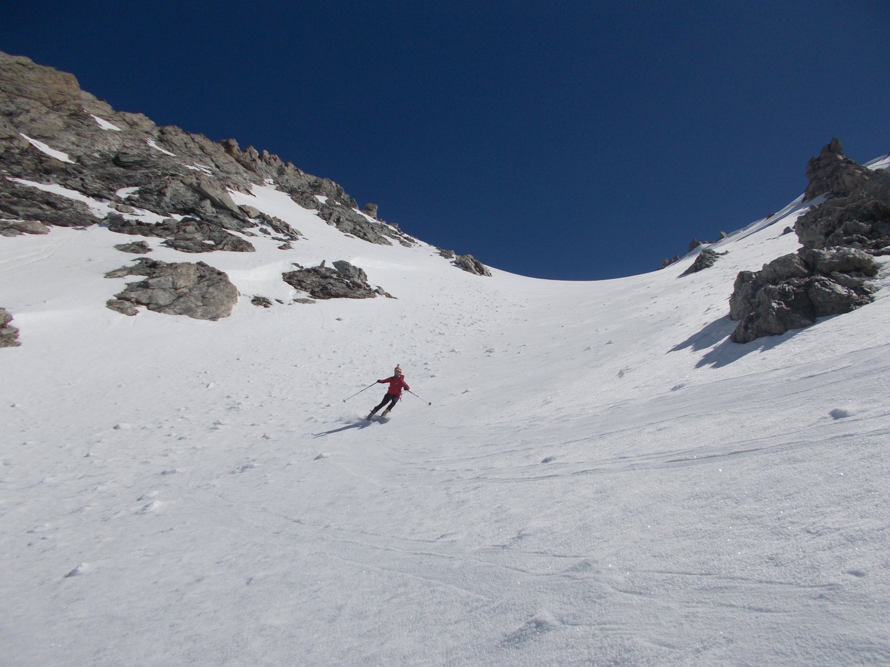 Aggiungo al commento di Bubbolotti, che condivido, qualche foto. Noi siamo saliti già calzando gli sci a 10 minuti dall’auto su un fondo di valanga, per poi stare sul fianco sinistro orografico (opposto ai tornanti della strada) e traversare in alto per raggiungere la gorgia e pian dei Morti. Discesa alle 10.40, fino a 2400 m. da 5 stelle. Con Met.