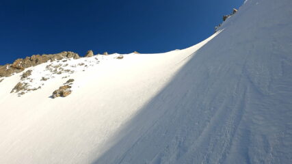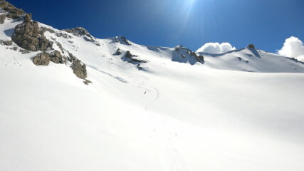 Partiti 200m prima del Rif. Scarfiotti intorno alle 7.15, calzati gli sci sul primo tornante su ottimo rigelo. Nella notte una leggera spolverata ha reso il paesaggio fantastico! Canale intonso, davvero bello.