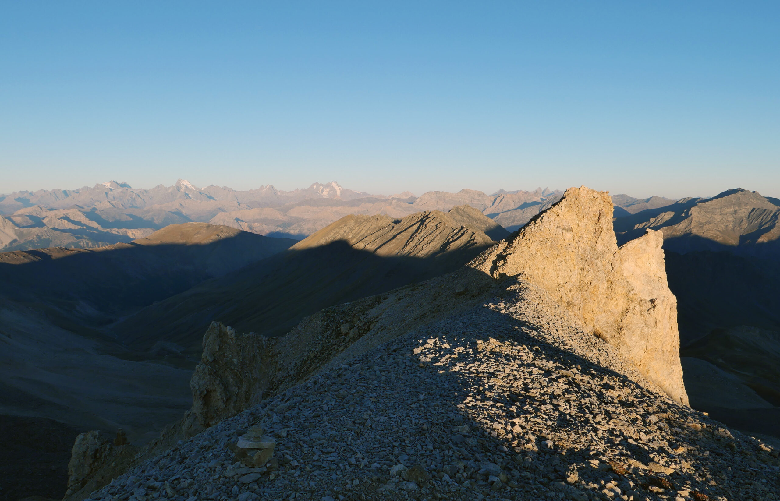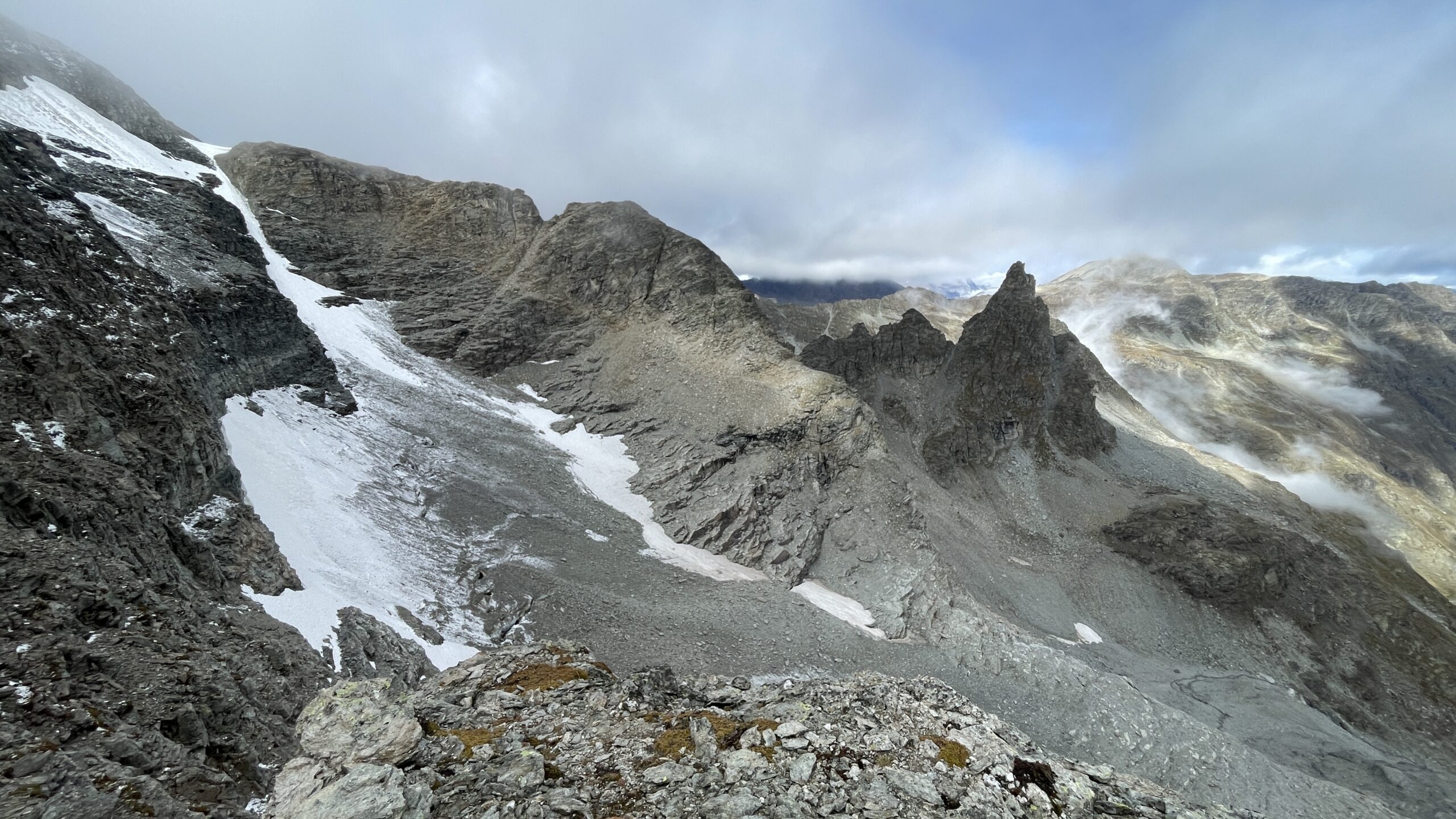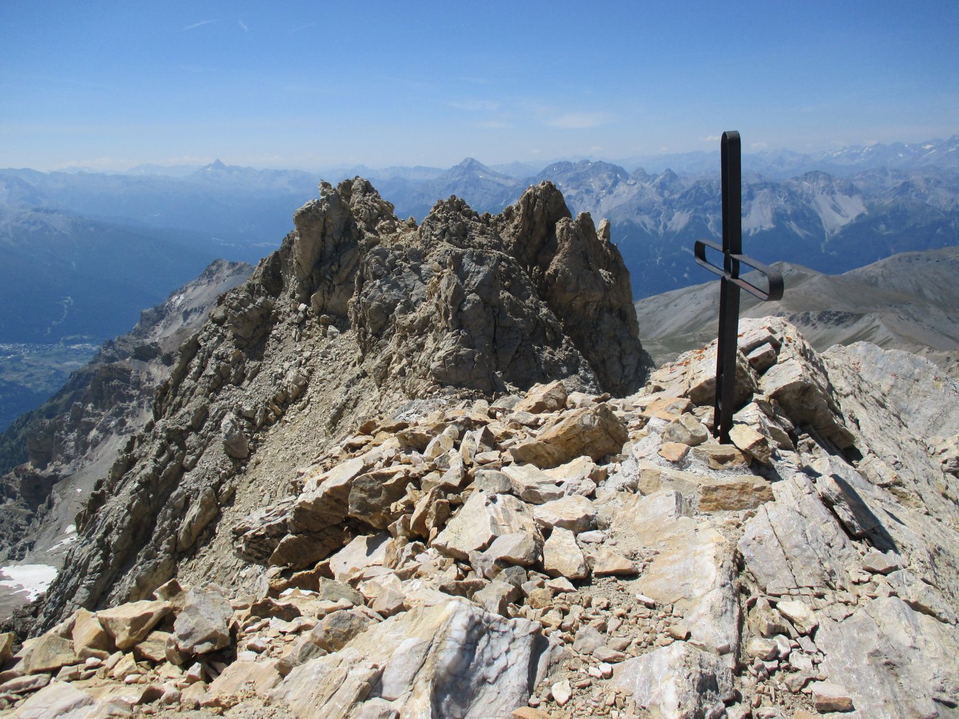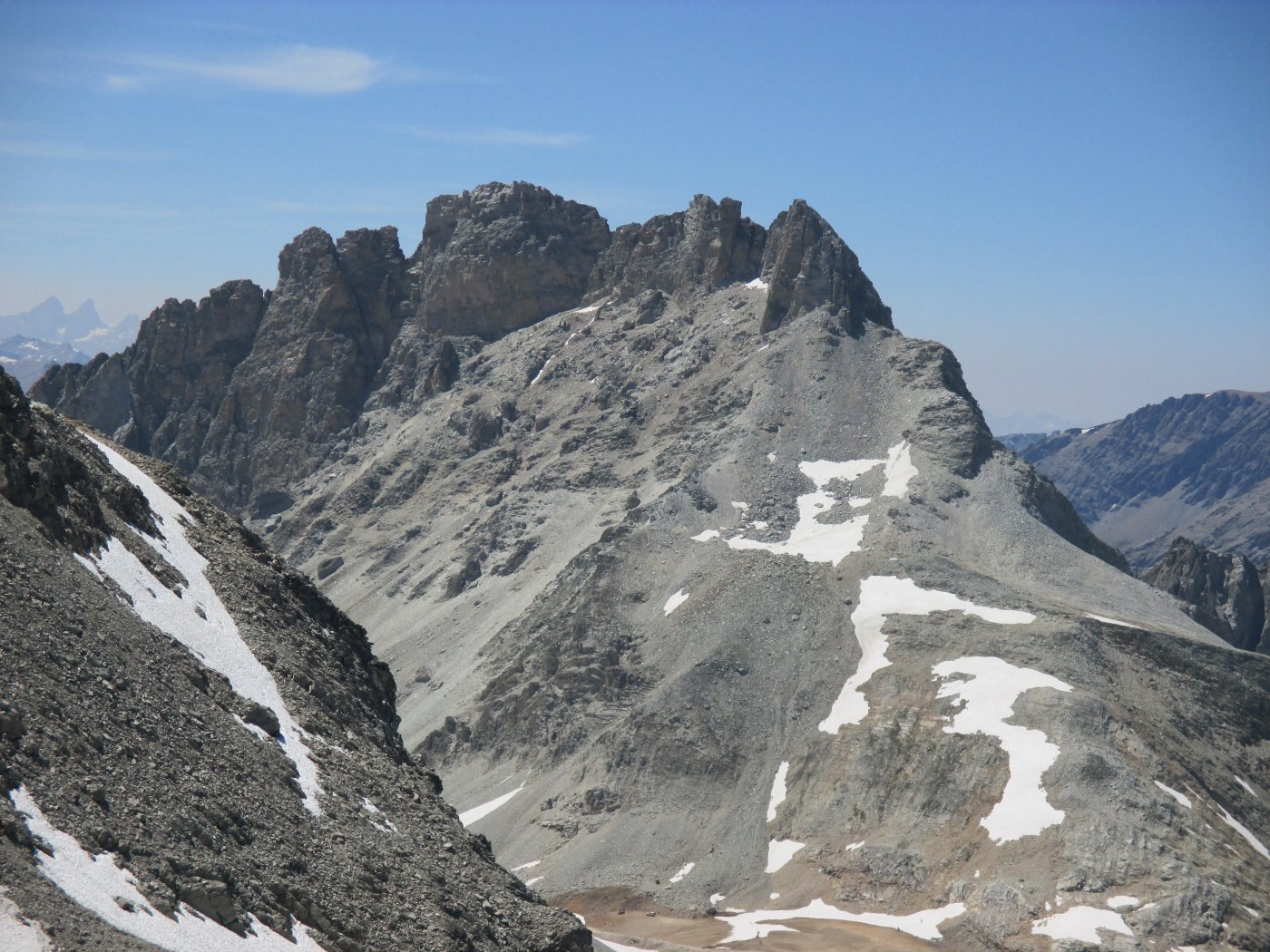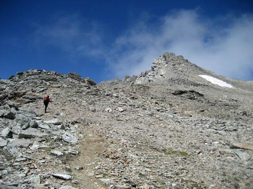 Volgendo a sinistra, si percorre la cresta salendo così in breve alla Punta Galambra (3123m), piccolo torrione roccioso strapiomante verso N. A questo punto, sempre seguendo la cresta, scendere al Passo di Galambra (3050m) e risalire i pendii adducenti al Colle Peirous, da cui in breve si raggiunge la panoramica sommità del Roc Peirous o Truc Peyron (3189m).