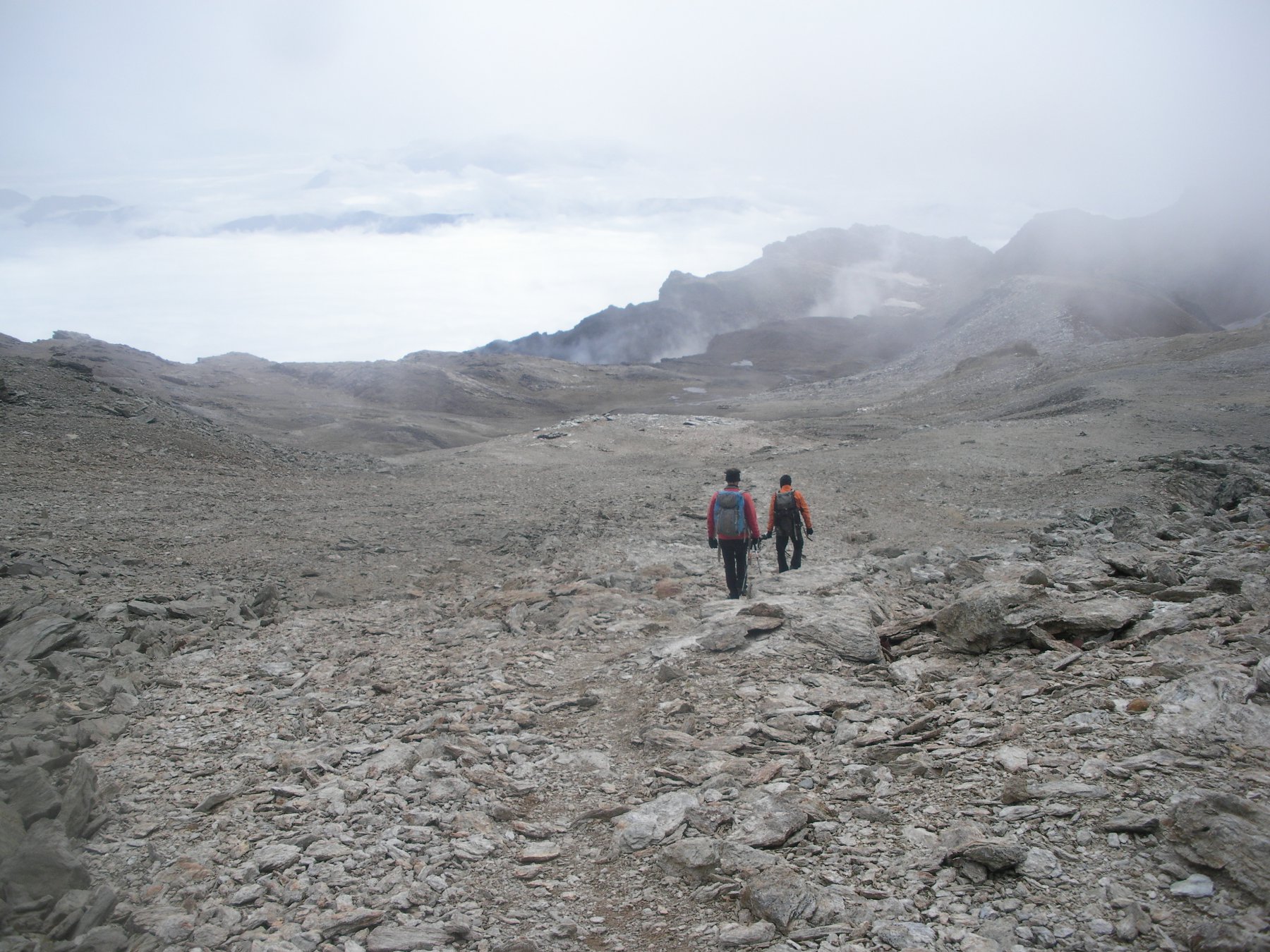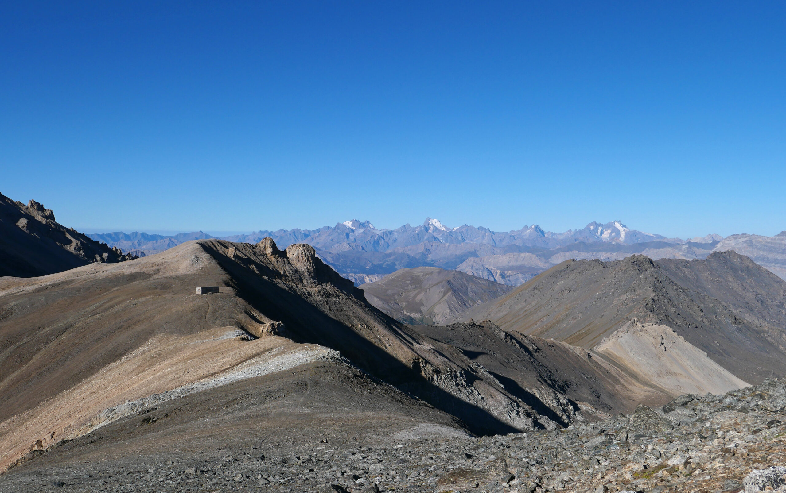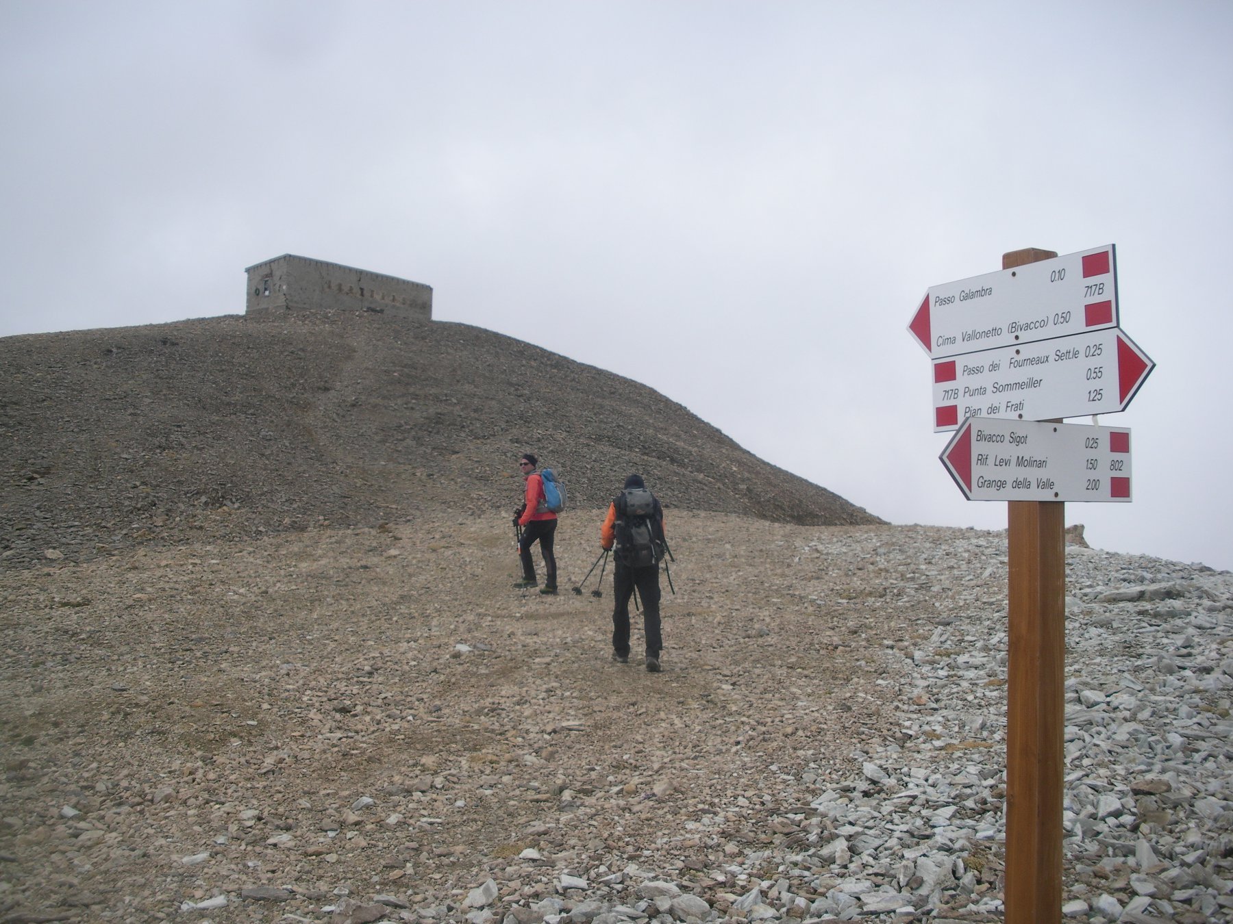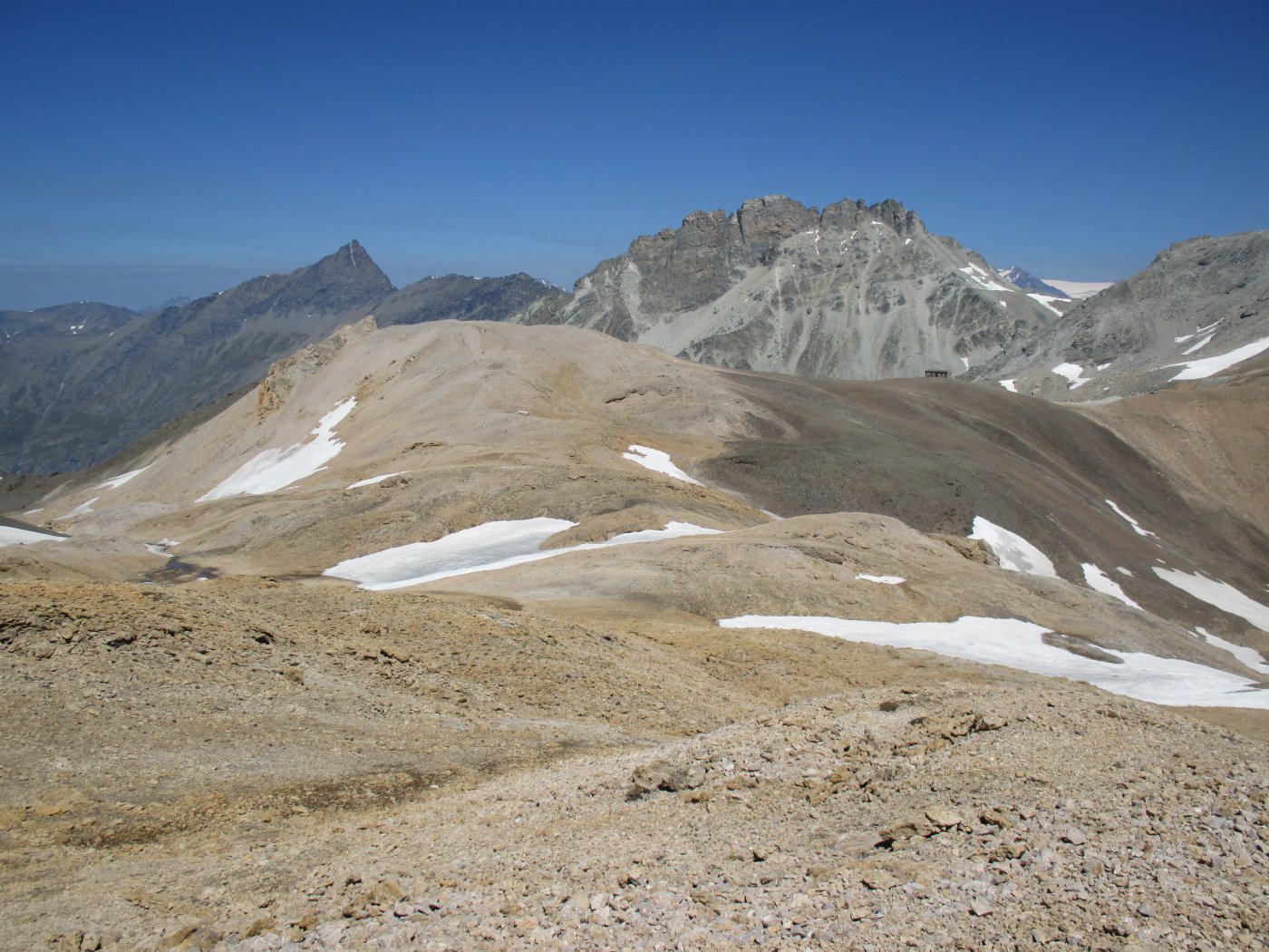 Raggiunto il bivacco, con un sentierino a saliscendi tra le pietraie si perviene al Lago di Galambra e da qui al Passo Meridionale dei Fourneaux, dove è sito un piccolo ricovero militare (3094m).