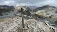 A questo punto, tornati al Colle Peyrous e percorrendo la larga cresta detritica diretta a Sod-Ovest, si giunge alla base dei torrioni rocciosi la vetta della Cima del Vallonetto; una traccia di sentiero costeggia tali torrioni e, con un ultimo tratto un po’ esposto, raggiunge un piccolo ricovero militare e le roccette sulle quali è collocata la croce di vetta (3222m).