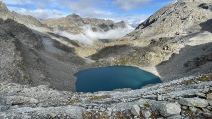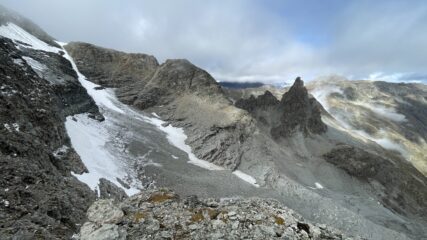 Da qui siamo scesi in direzione del Lago d’Ambin e girando a sinistra su un piccolo canalino siamo risaliti lungo la pietraia rimanendo sulla parte destra arrivando così al Monte Ambin (Sono presenti ometti ma abbiamo anche provveduto a ripristinare quelli caduti).