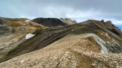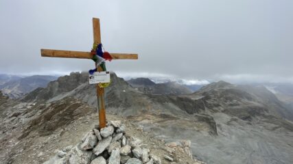 Da qui le condizioni meteo hanno iniziato a peggiorare con fortissimo vento. Ci siamo diretti verso Punta Sommeiller e verso Cima dei Fourneaux seguendo il sentiero ben tracciato.