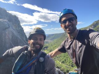 Abbiamo salito la via dello spigolo (chiamata anche spigolo blu in altre guide), L3 e L4 davvero molto belli e a mio parere L4 più duro di 5c+ (come riportato in alcune guide), ma comunque facilmente azzerabile.