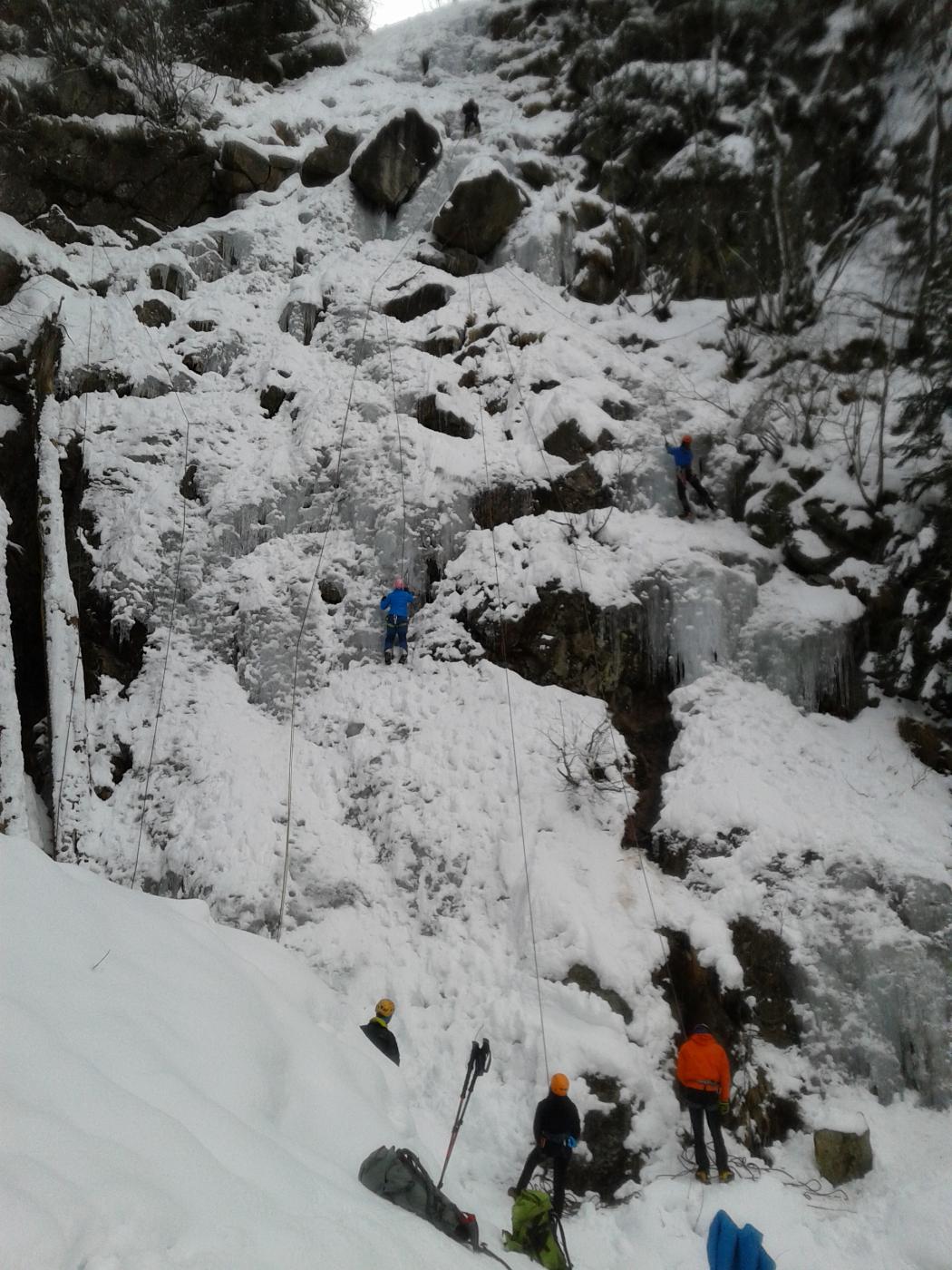 Salita in ogni percorso possibile utilizzando le varie soste. Giornata “calda”, in tarda mattinata il ghiaccio gocciolava.