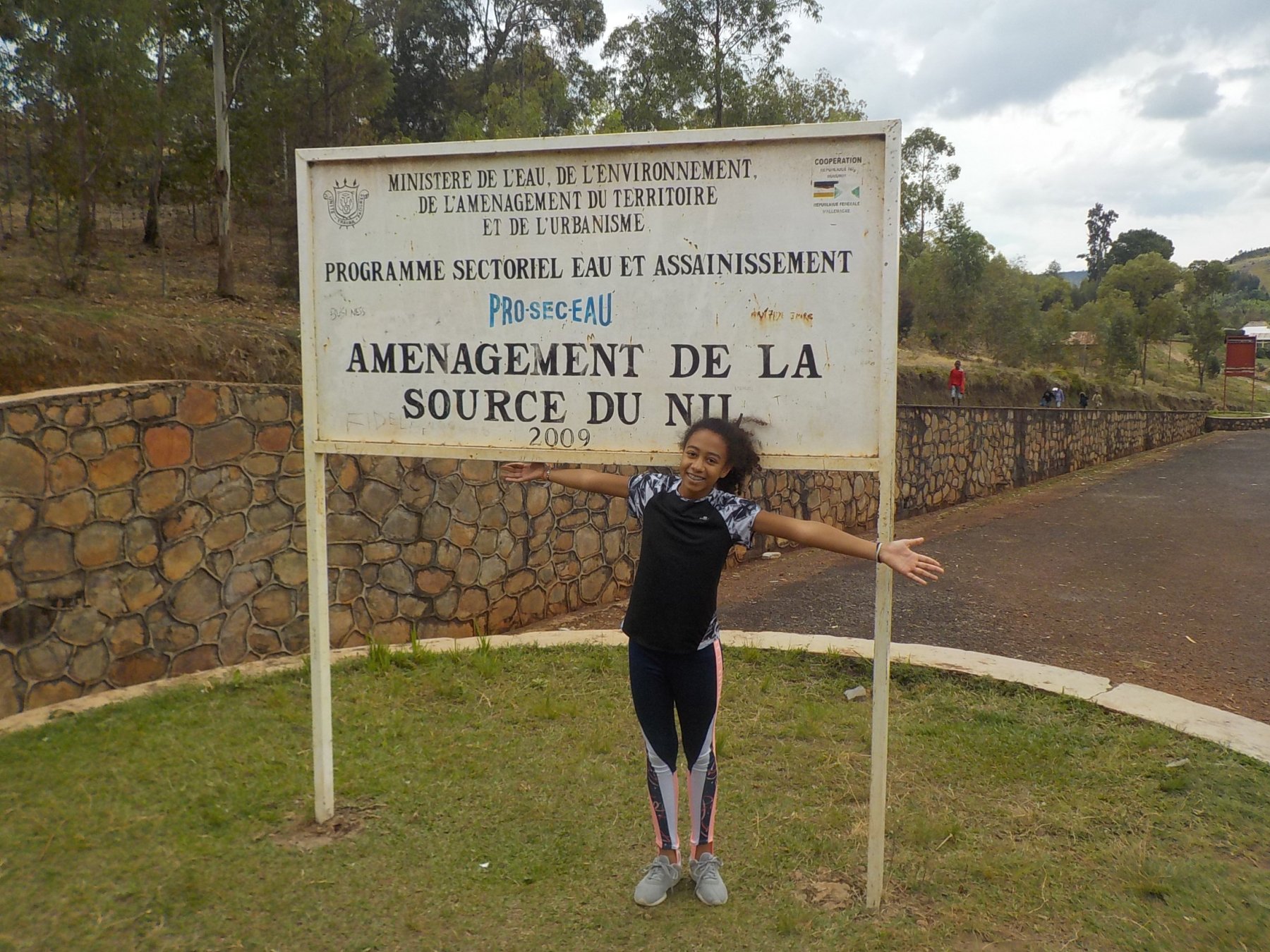 Purtroppo la sorgente è stata trasformata in una fontana e l'acqua è incanalata attraverso delle brutte vasche di piastrelle azzurre. La guida ci ha assicurato che c'è un progetto per riportare le sorgenti ad un aspetto più naturale. Su alcune cartine il corso d'acqua ha il nome di Ruvyronza mentre sulla mappa che ho scaricato per il Garmin ha il nome Nile già dalla sorgente
