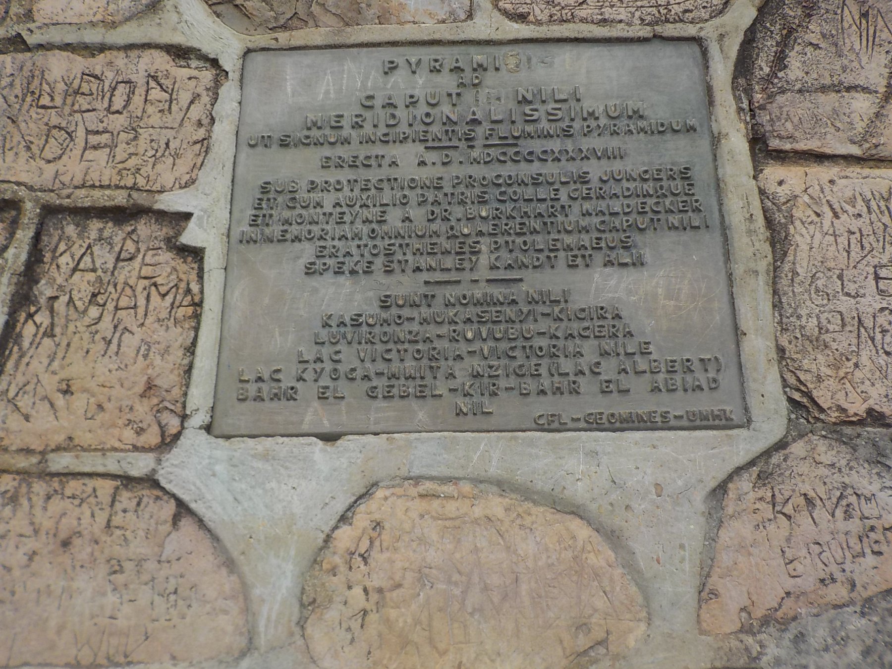 Tra le numerose sorgenti del Nilo queste sono quelle più meridionali e sono facilmente raggiungibili. Sono state scoperte dall'esploratore tedesco Burkhart Waldecker, che si trovava in Ruanda-Urundi in fuga dalle persecuzioni naziste, nel 1937. Waldecker ha anche fatto costruire la piramide commemorativa esattamente sullo spartiacque tra il bacino del Nilo ed il bacino del Congo. La guida locale, che in genere si trova al posteggio, è molto brava e racconta la storia della targa metallica che in latino ricorda tutti i principali cercatori delle sorgenti. Burkhart Waldecker aveva degli amici in Congo Belga che potevano fondere la targa, quindi percorse circa 2000 km, ovviamente a piedi per andare da loro a far preparare la targa e poi ritornò l'anno dopo per metterla in loco sulla piramide.