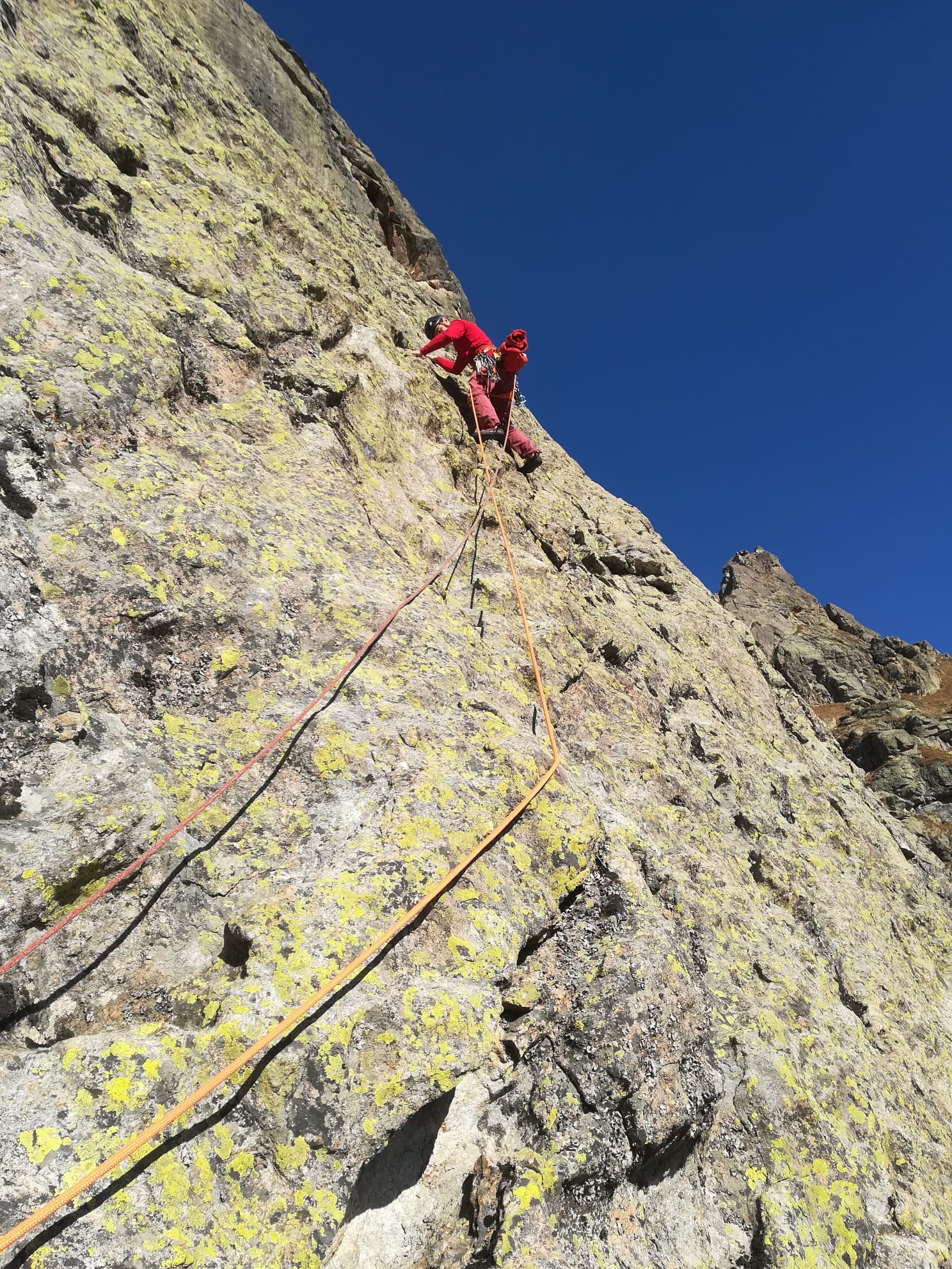 Un vero gioco di stile sulle delle placconate perfette e compatte, una grande via alpinistica. Grandi sono la bellezza e l'intuizione dietro i tiri, grandi gli spazi tra una protezione e l'altra: pur non avendo gradi teoricamente terribili resta una delle più belle perle delle Alpi Marittime.