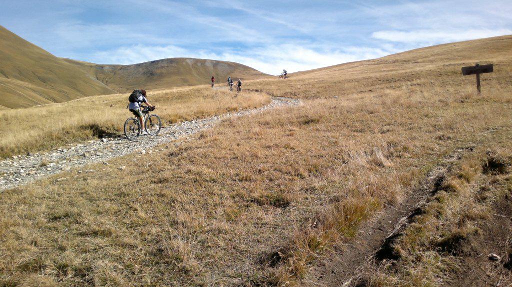 Dal colle inizia la bella e appagante discesa in single trek sul sentiero, talvolta solo traccia sui prati e per tratti in falsopiano, che diventa poi evidente e piu’ tortuoso, sino a percorrere i numerosi impegnativi tornantini che scendono per circa 300m di dislivello affianco alle piste sciistiche sino a Le Chazelet (m.1740).