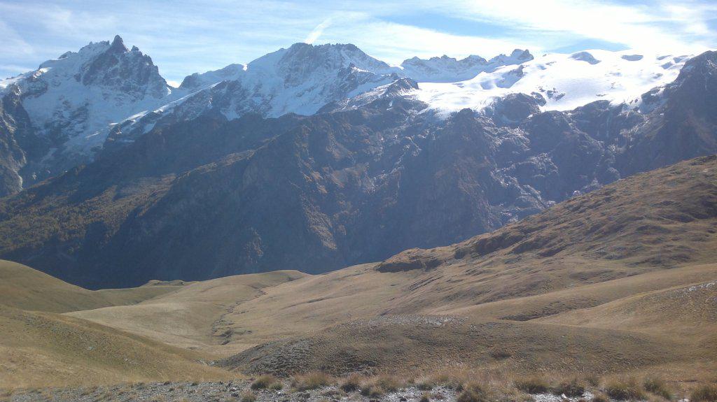 Si arriva quindi al Col St. Georges, nella zona di Chalet Favre (2245 m) e il panorama si spalanca verso i ghiacciai della Mejie, i monoliti rocciosi delle Aiguilles d’Arves e l’immensa conca di prati che appare davanti.