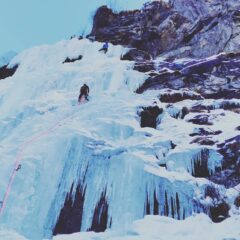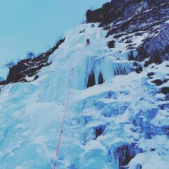 Cascata in ottime condizioni, salita su una linea a centro destra, ghiaccio buono, choidatura ottima