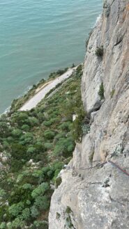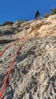 - L2: salire un muretto, poi seguire un diedro grigio verso destra