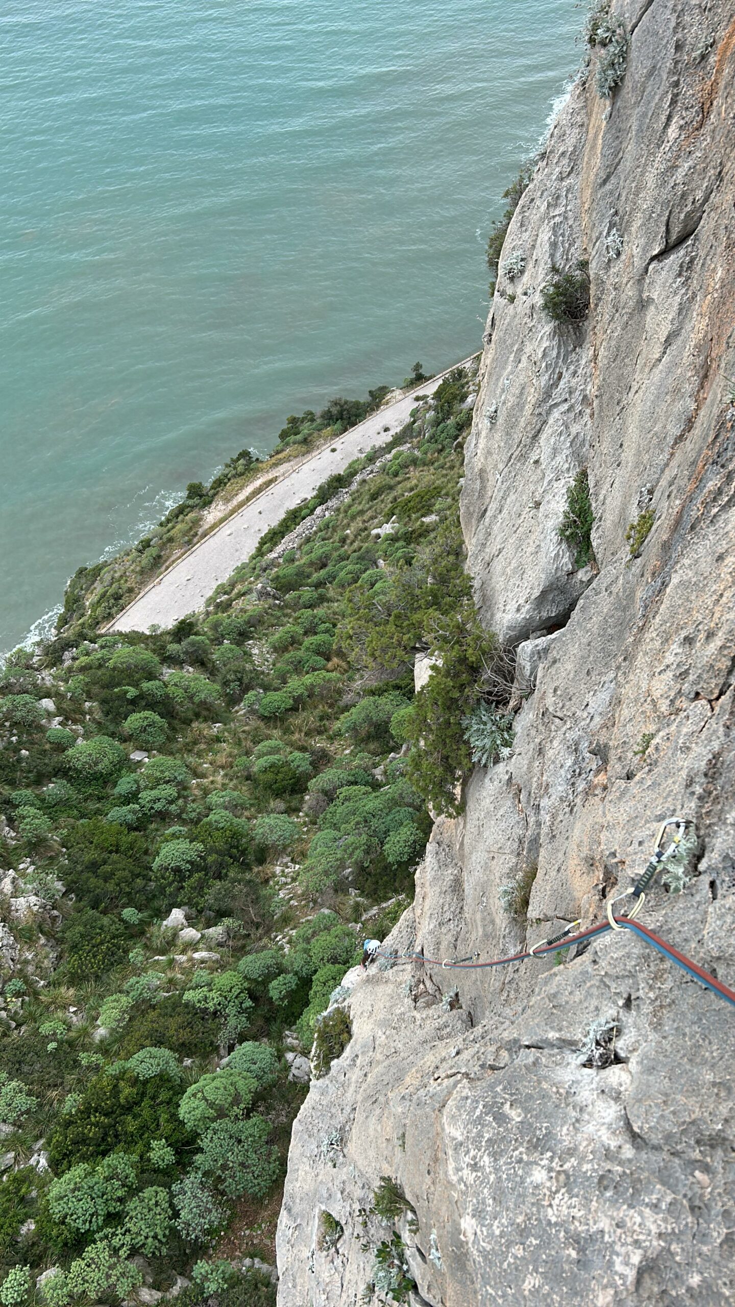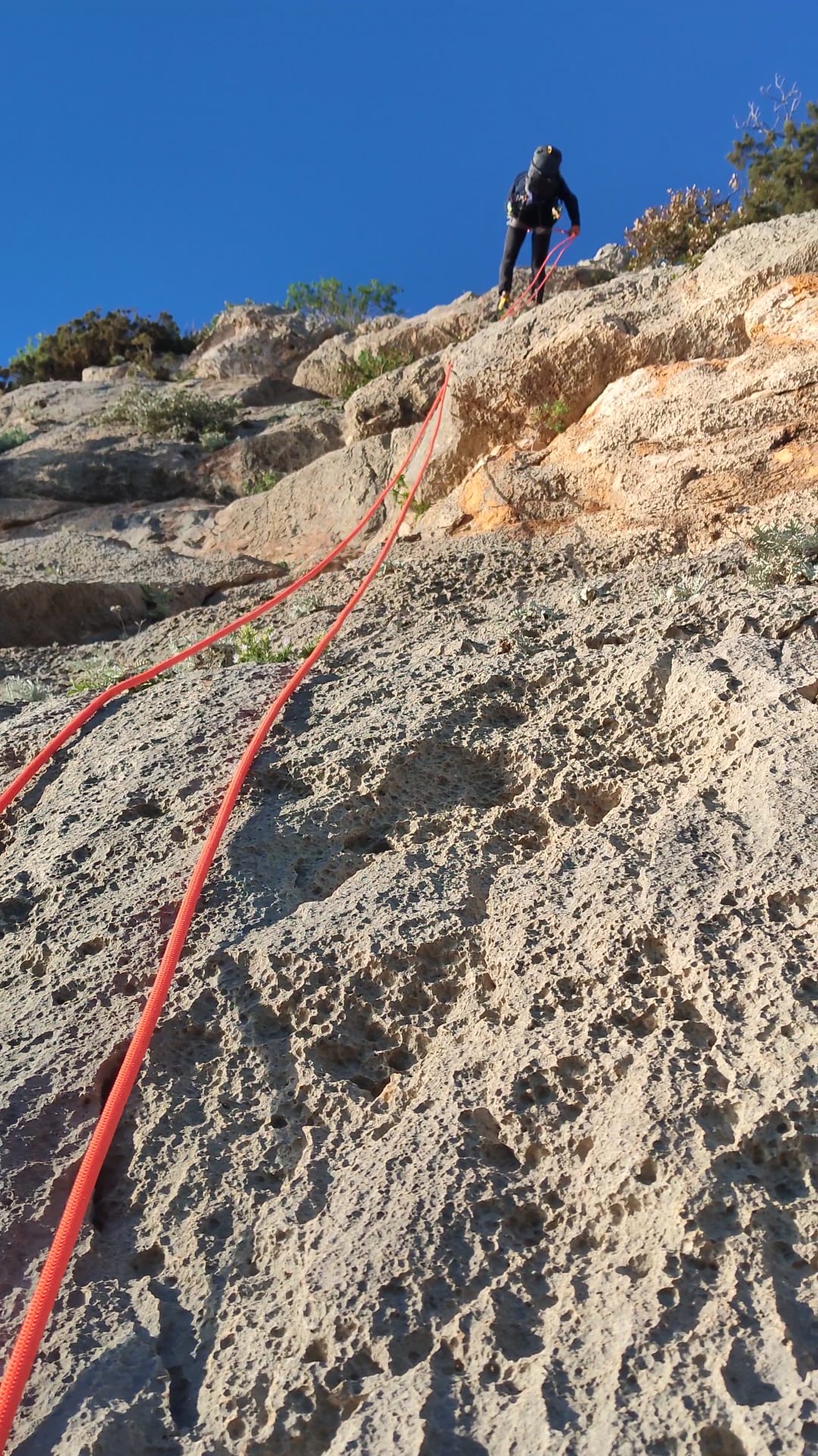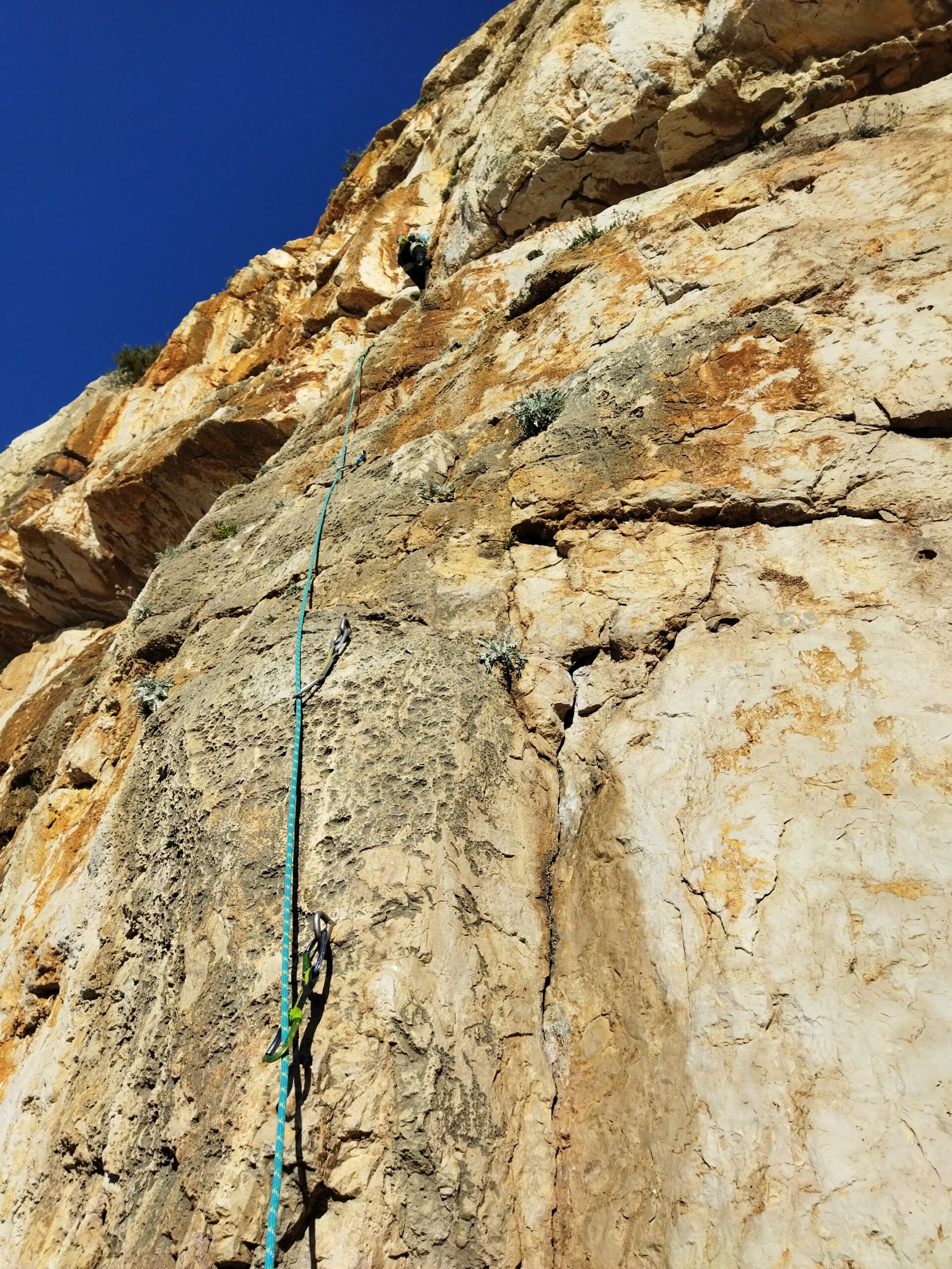 - L1: dopo un muretto, salire su una placca lavorata e poi seguire un lungo diedro