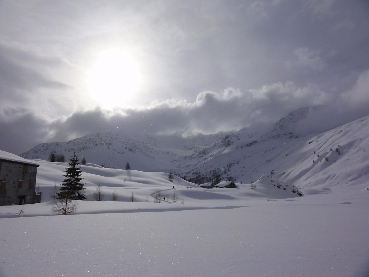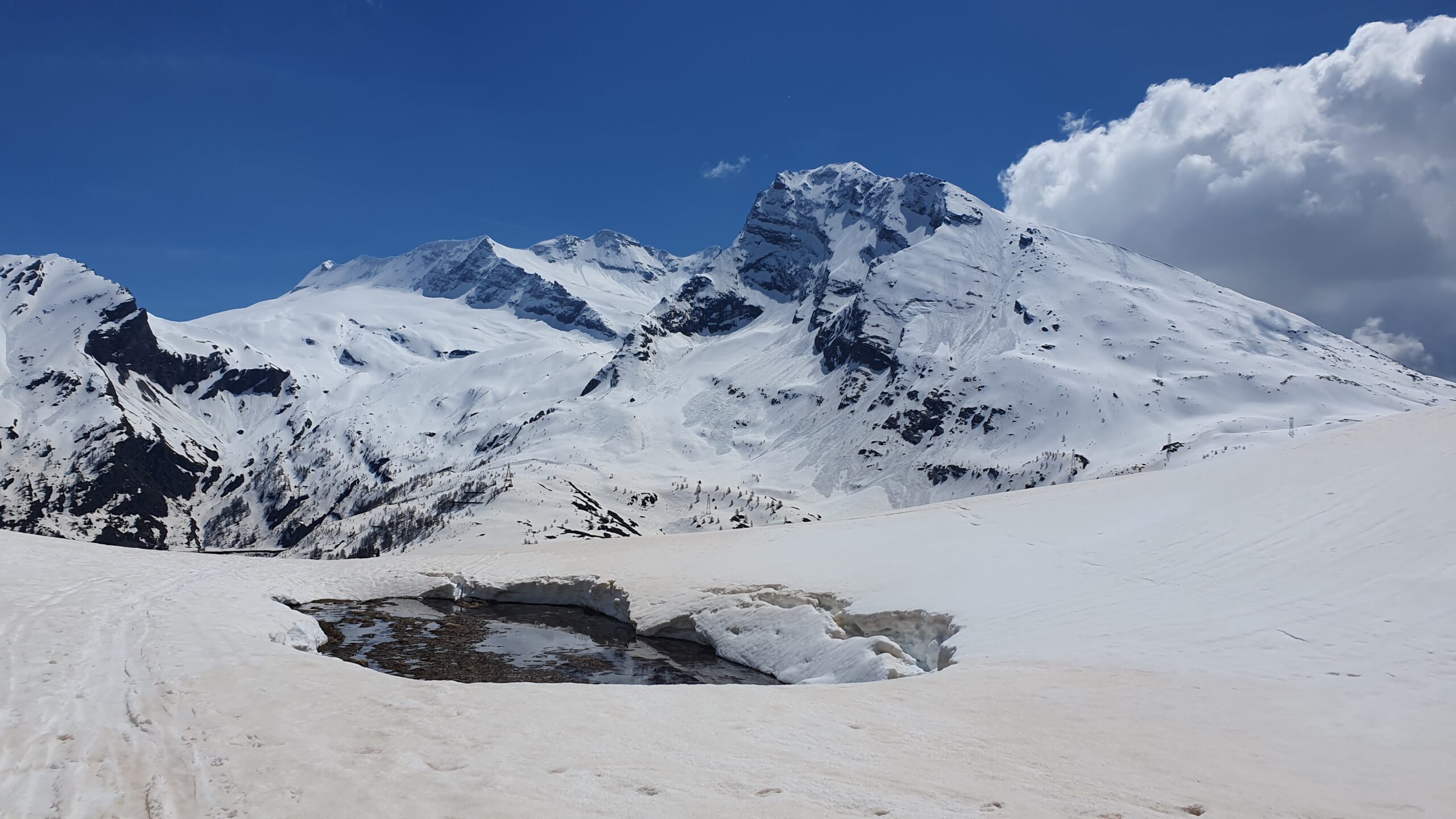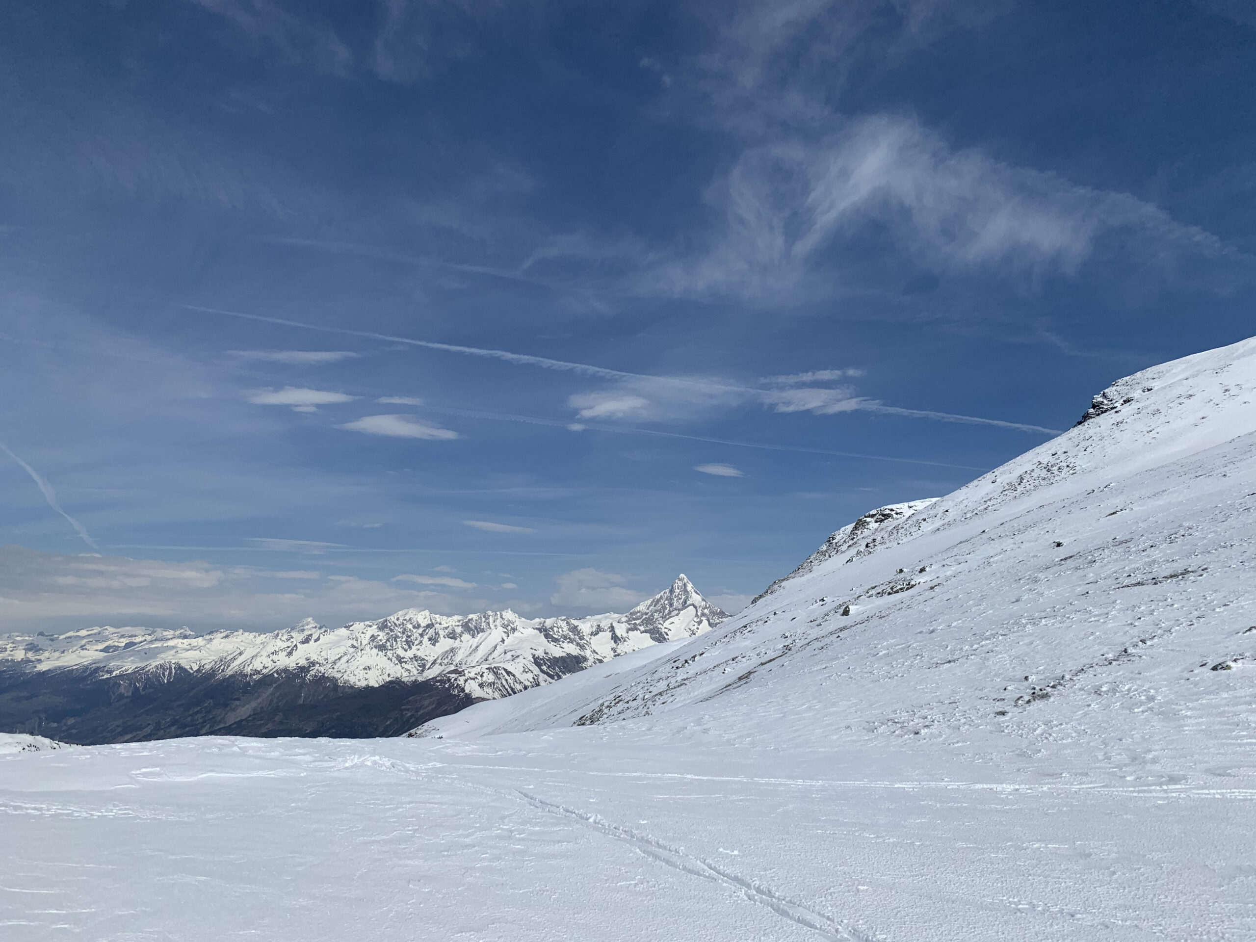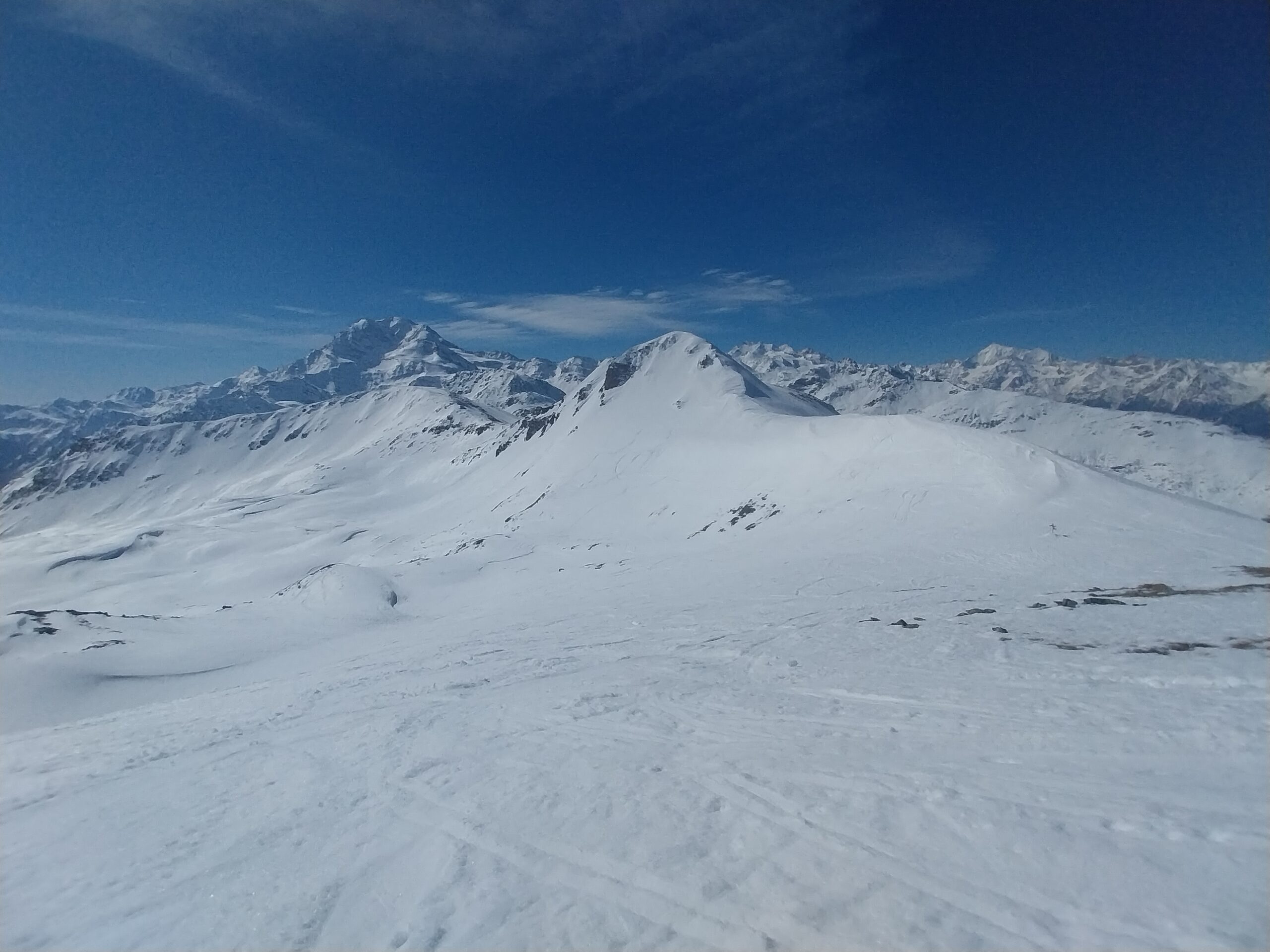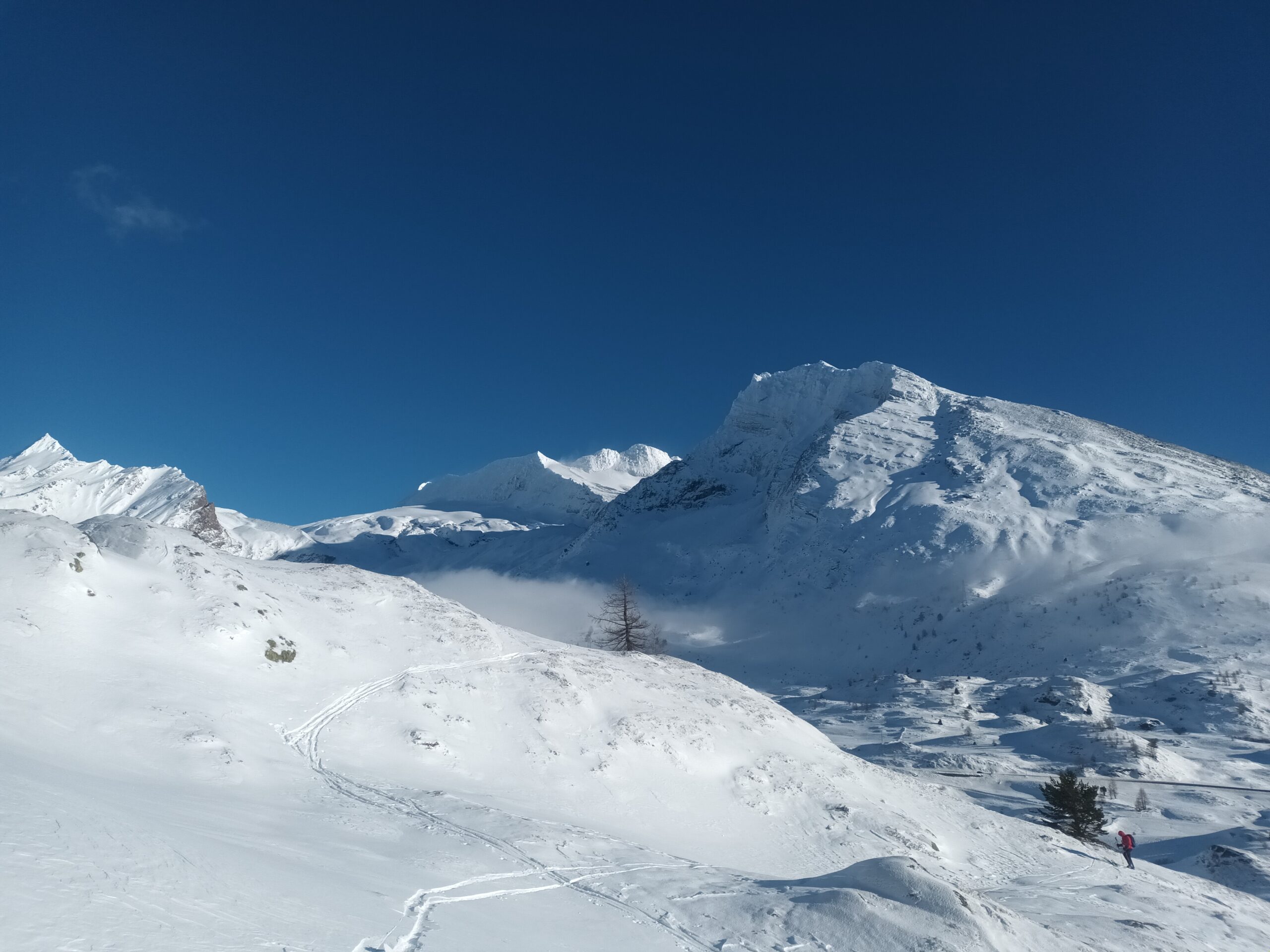 Eventuale salita anche al Touchuhorn m. 2661. Dallo Spitzhorli scendere fin sotto ai laghi Obre Rossusee, a ca. q. 2350 m., rimettere le pelli e risalire la cresta W del Tochuhorn, solitamente percorribile interamente sci ai piedi fino in vetta. Da questa vetta, oltre all’itinerario di salita, se vi sono buone condizioni di sicurezza è anche possibile scendere direttamente dal ripido versante SW (ingresso sui 45°, poi vi sono un paio di bei canali intorno ai 40°, AD/S4); al termine di questa ripida discesa, traversare verso uno dei percorsi iniziali di salita fatti per lo Spitzhorli.