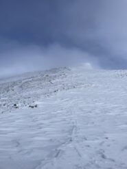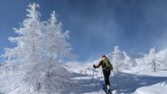 Discesa. Per gli itinerari di salita; si rileva che l’itinerario a) comporta il lungo traverso con diversi saliscendi per giungere alla partenza mentre l’itinerario b) è molto più sciistico e comporta solo una leggera risalita dal pianoro in fondo verso la piazzola di partenza a lato strada.