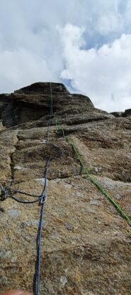 - L10- 30 metri, 4b salire un diedrino da proteggere friend e proseguire in placca fino alla base di un diedro sosta (1chiodo un Fix)