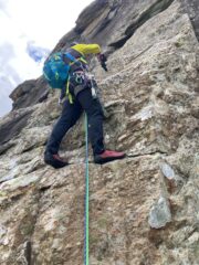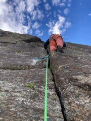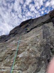 via su bella roccia su placche con un bel muro finale, concatenabile con le altre due vie del settore per chi cerca vie parzialmente attrezzate ma non difficili.