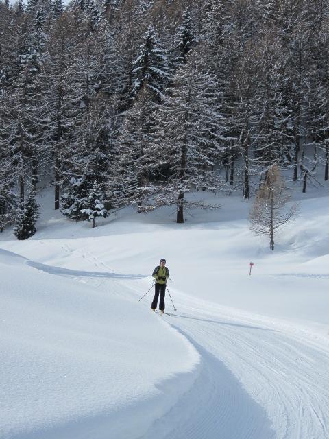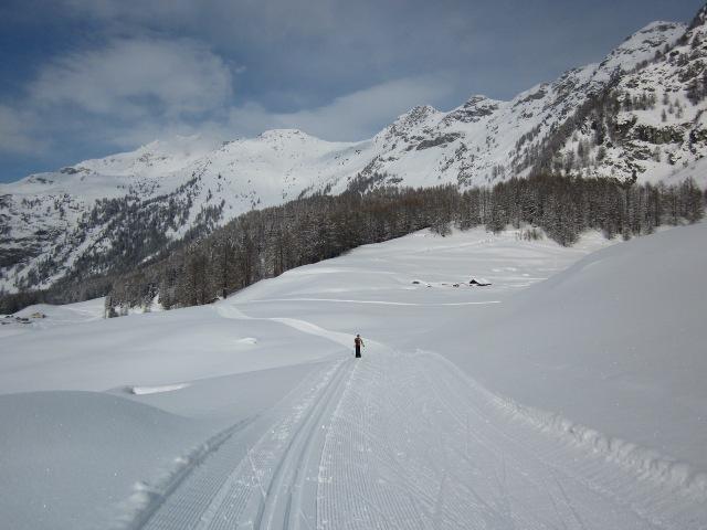 Fatto l’anello turistico del Gran Tor, per un totale di circa 24 Km. Temperature polari (tra i -6° e i -15°) ma grazie all’esposizione favorevole al sole non si stava così male. Innevamento ottimale e piste perfettamente battute, neve forse troppo fredda e quindi non molto scorrevole. La pista è veramente bellissima e anche abbastanza impegnativa per i continui saliscendi; inoltre si svolge in un ambiente assolutamente fantastico, lontana da strade e immersa per gran parte in una bellissima pineta. Consigliatissima!!!