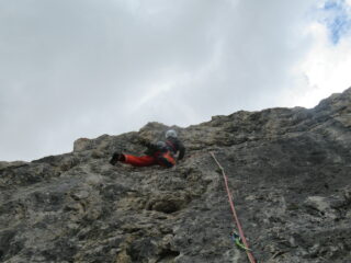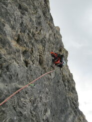 L3: 6b, 30m, dapprima in verticale e poi in ascesa verso dx