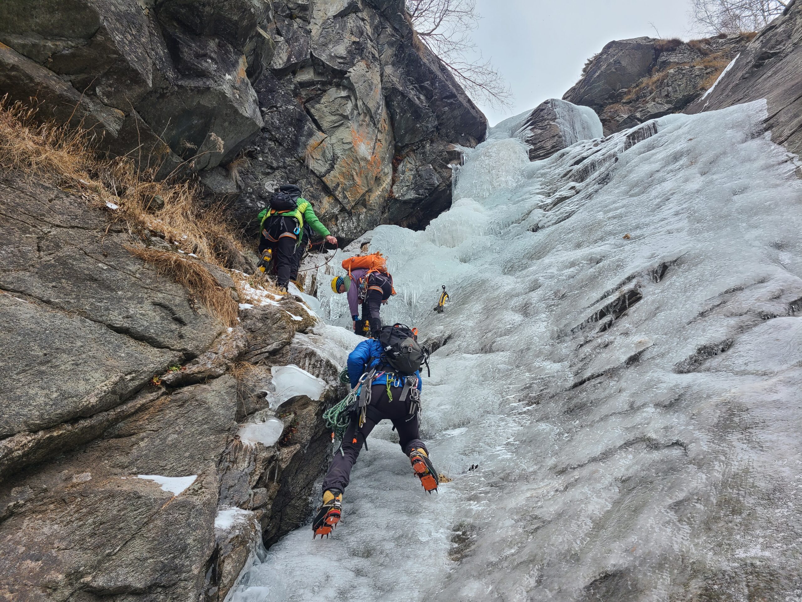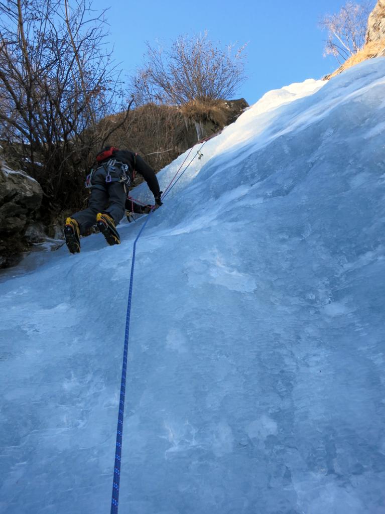 - poi ancora altri 2 salti sempre intorno ai 70° con muretti a 80° intervallati da brevi avvicinamenti sul fondo del torrente.