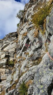 - L4: traverso verso sinistra su placca poi risalto tecnico, 6a+;