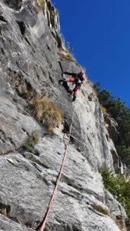 - L3: corto tiro con partenza su placca appoggiata seguita da muretto verticale, 5a;