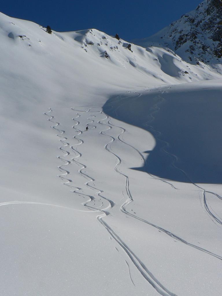 Da Prinardo seguire strada che sale lentamente lungo Vallone Ferriere. A 1600 circa si dirama. Superare balza di 200 m circa in bosco larici e imboccare vallone (di sx in salita) di Forneris che costituisce praticamente la naturale prosecuzione di quello sottostante. Percorso breve tratto dello stesso volgere verso Sud-Est ovvero in sx (in salita) e risalire la comba del Pilone fino al Colle superiore di Stau. Il colle è quello più a Nord. Il vero colle, a quota poco inferiore, è poco a Sud ma ha un pendio pò + ripido che in caso di gita da tanta neve nn è forse troppo sano.
