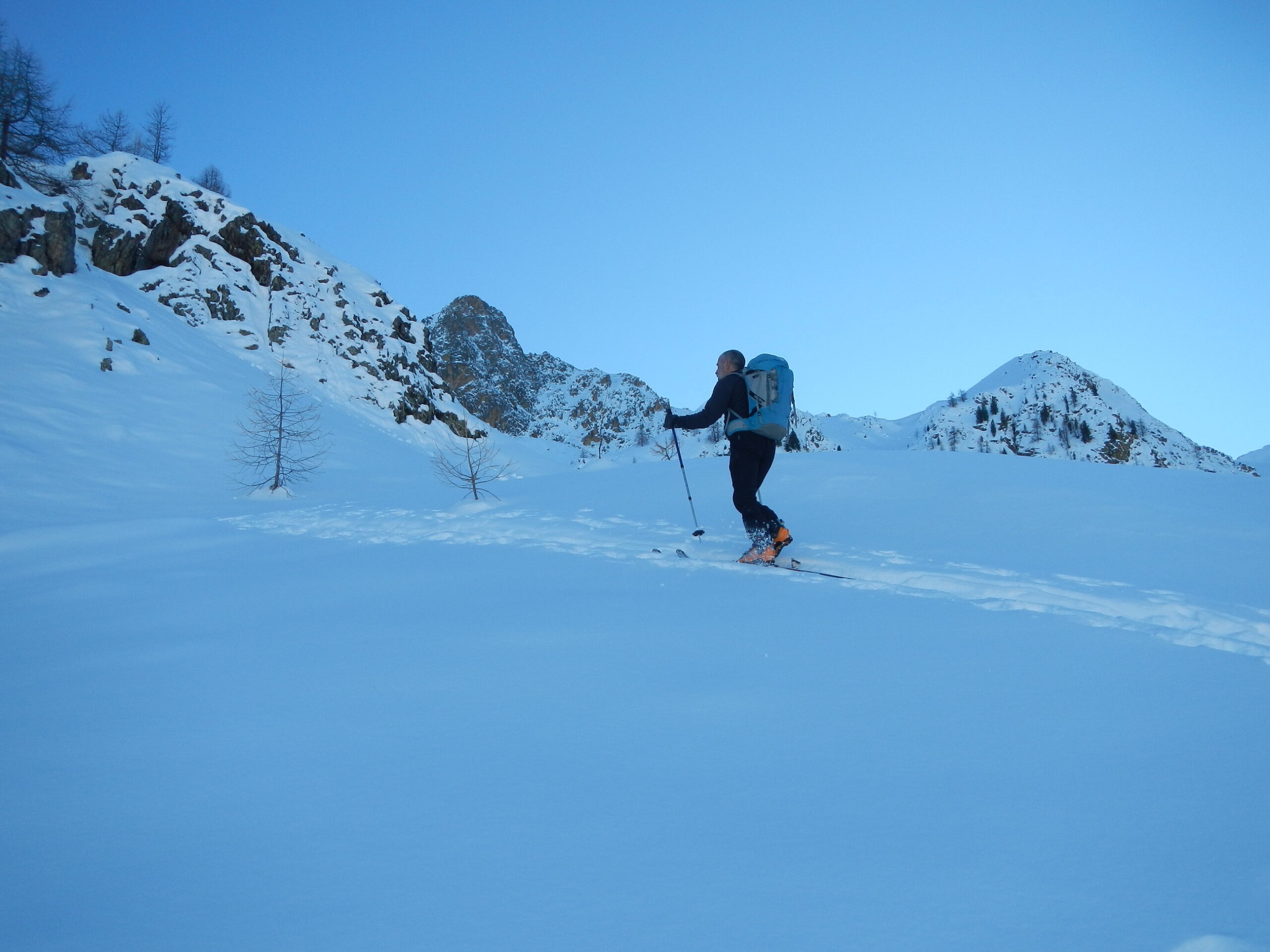 Itinerario molto interessante e vario nello sviluppo, con due rampe sostenute che permettono l’accesso ai pendii superiori, molto belli sia per l’ambiente alpino sia per lo sci.